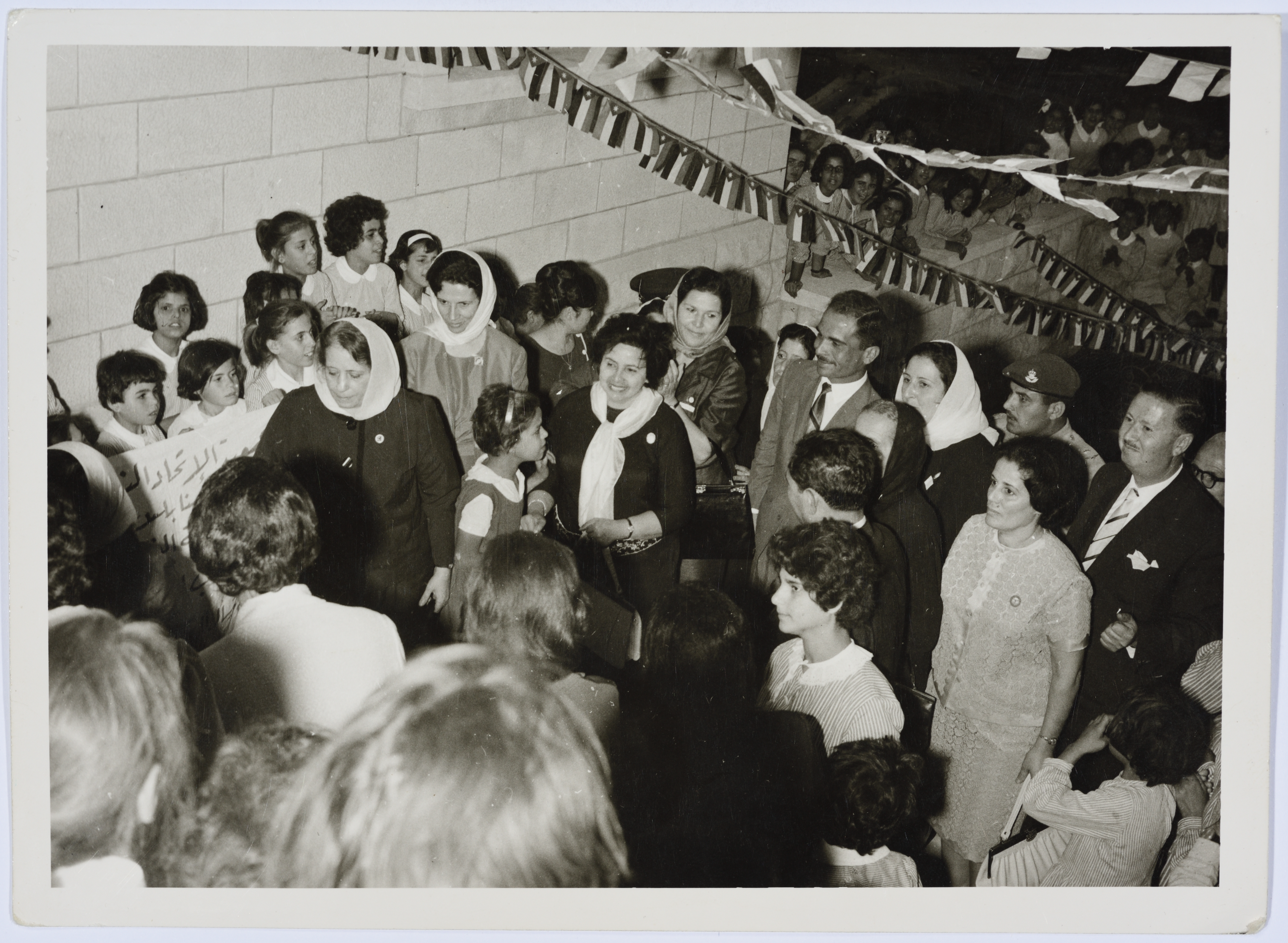 King Hussein of Jordan on his visit to the Arab Women Union Society in Nablus