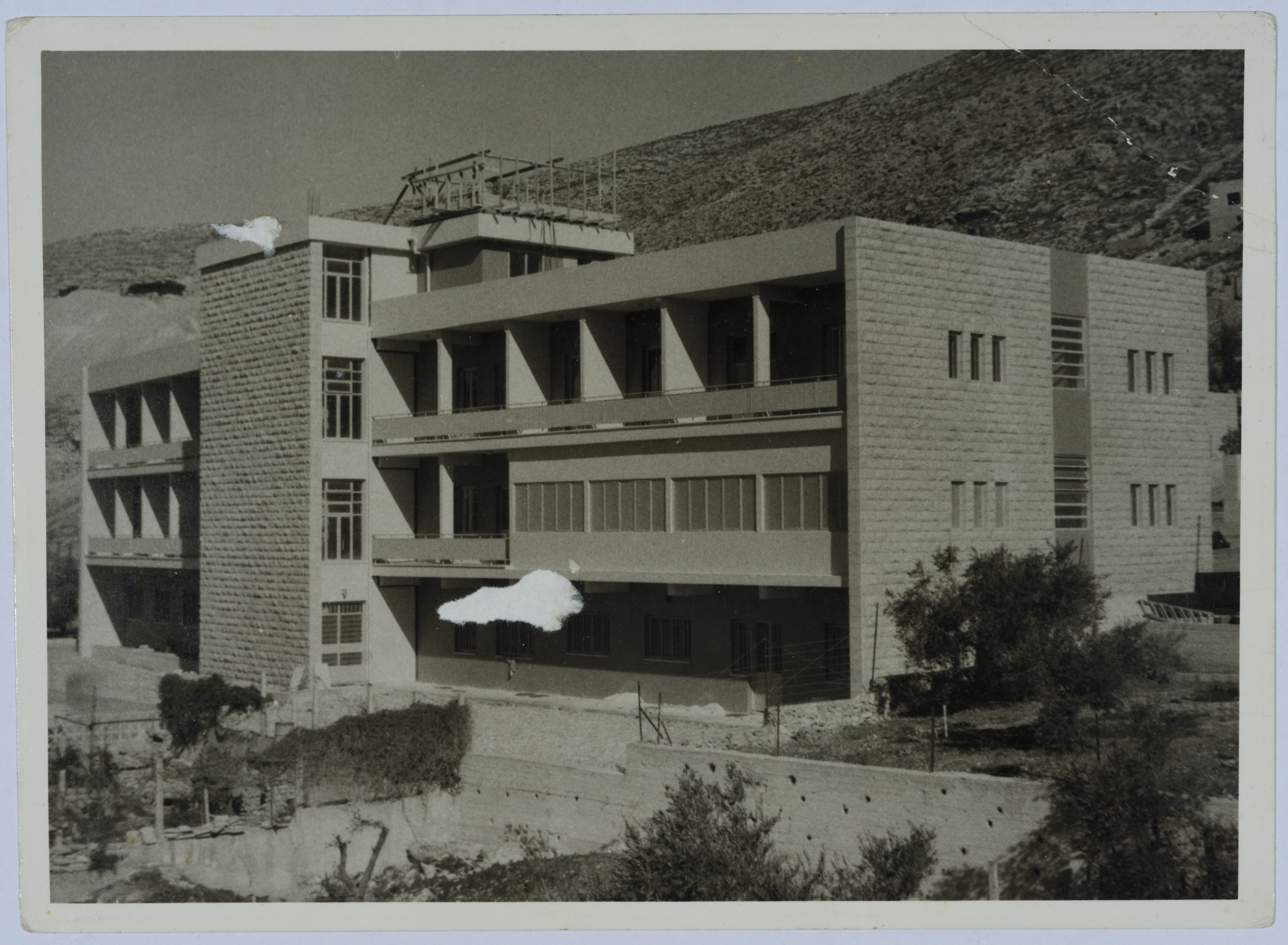 A black-and-white photo of the Hospital of the Arab Women Union Society in Nablus.