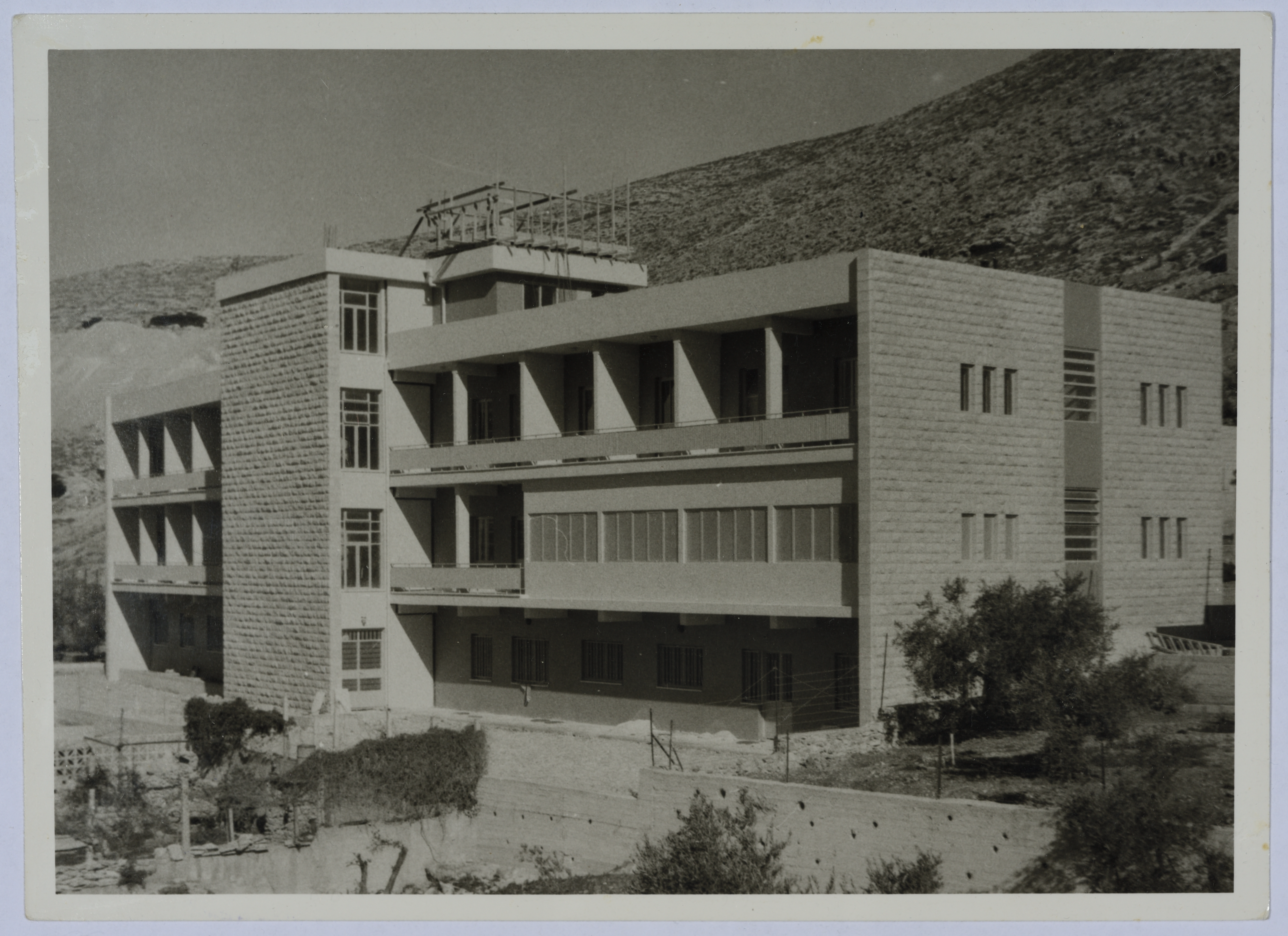 A black-and-white photo of the Hospital of the Arab Women Union Society in Nablus.