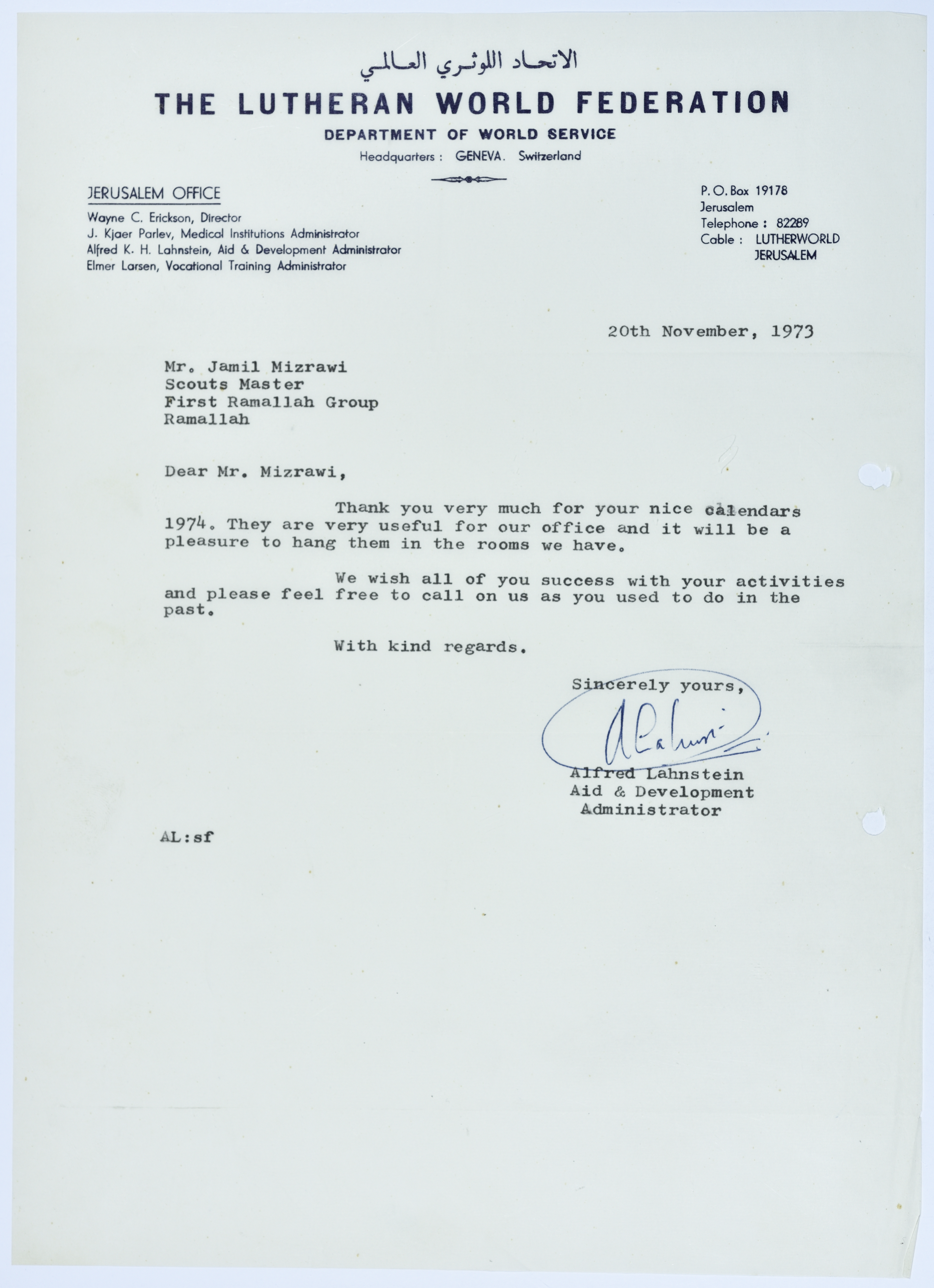 A Thank-You Letter from the Lutheran World Federation to Sareyyet Ramallah-First Ramallah Group (FRG)