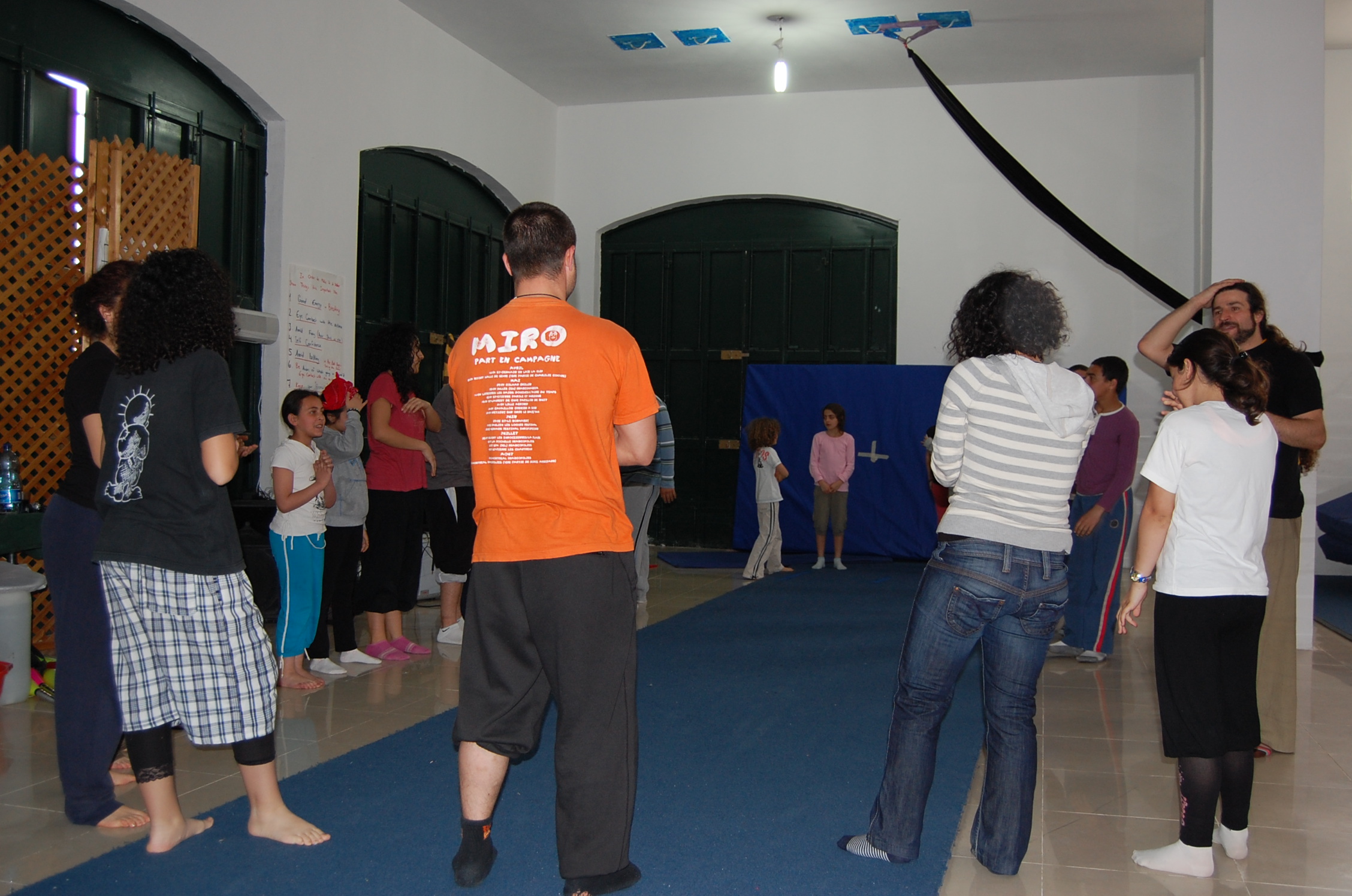 صورة من تدريبات مدرسة سيرك فلسطين مع فرقة أسبانية، 2009