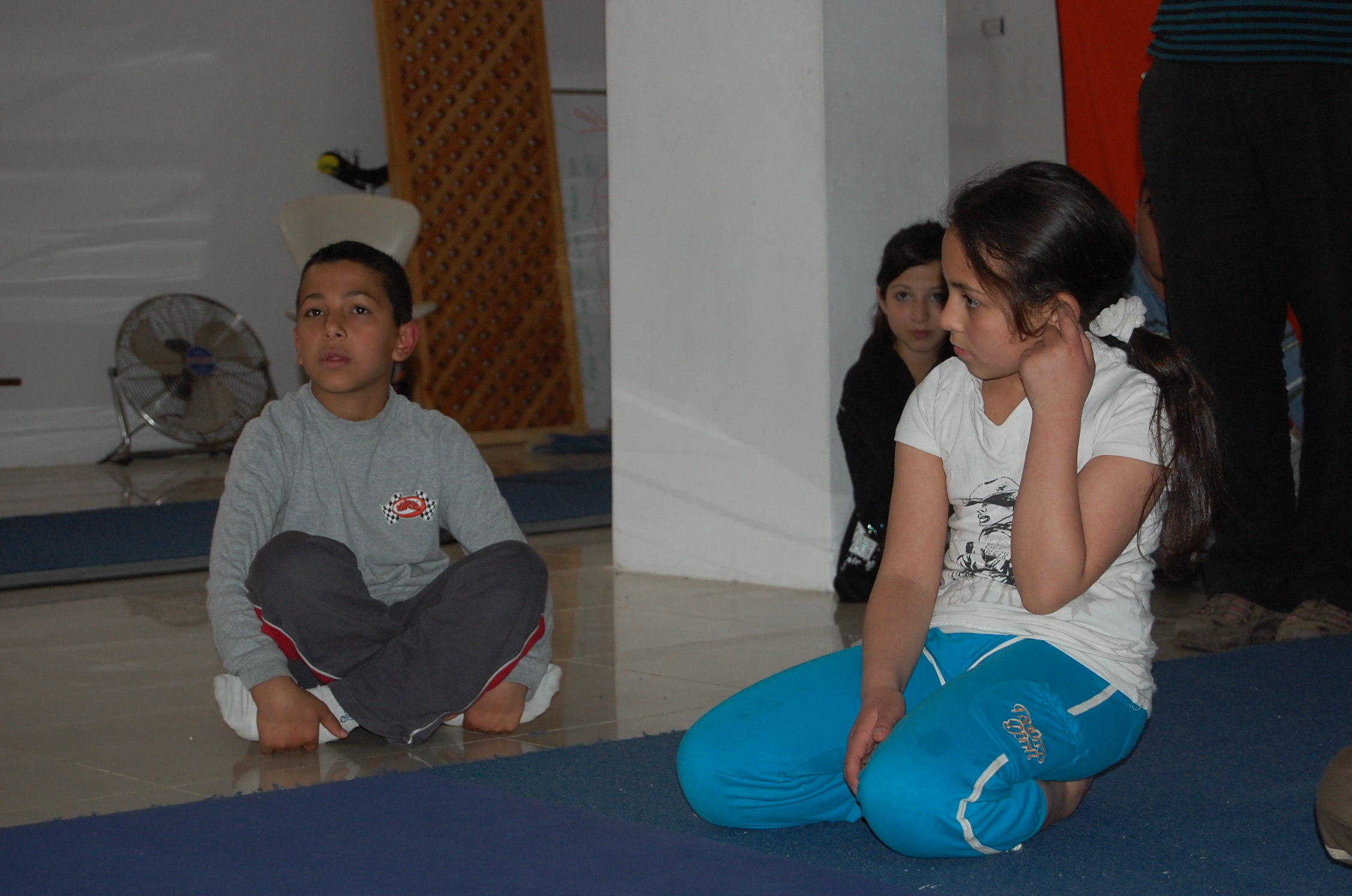 صورة من تدريبات مدرسة سيرك فلسطين مع فرقة أسبانية، 2009