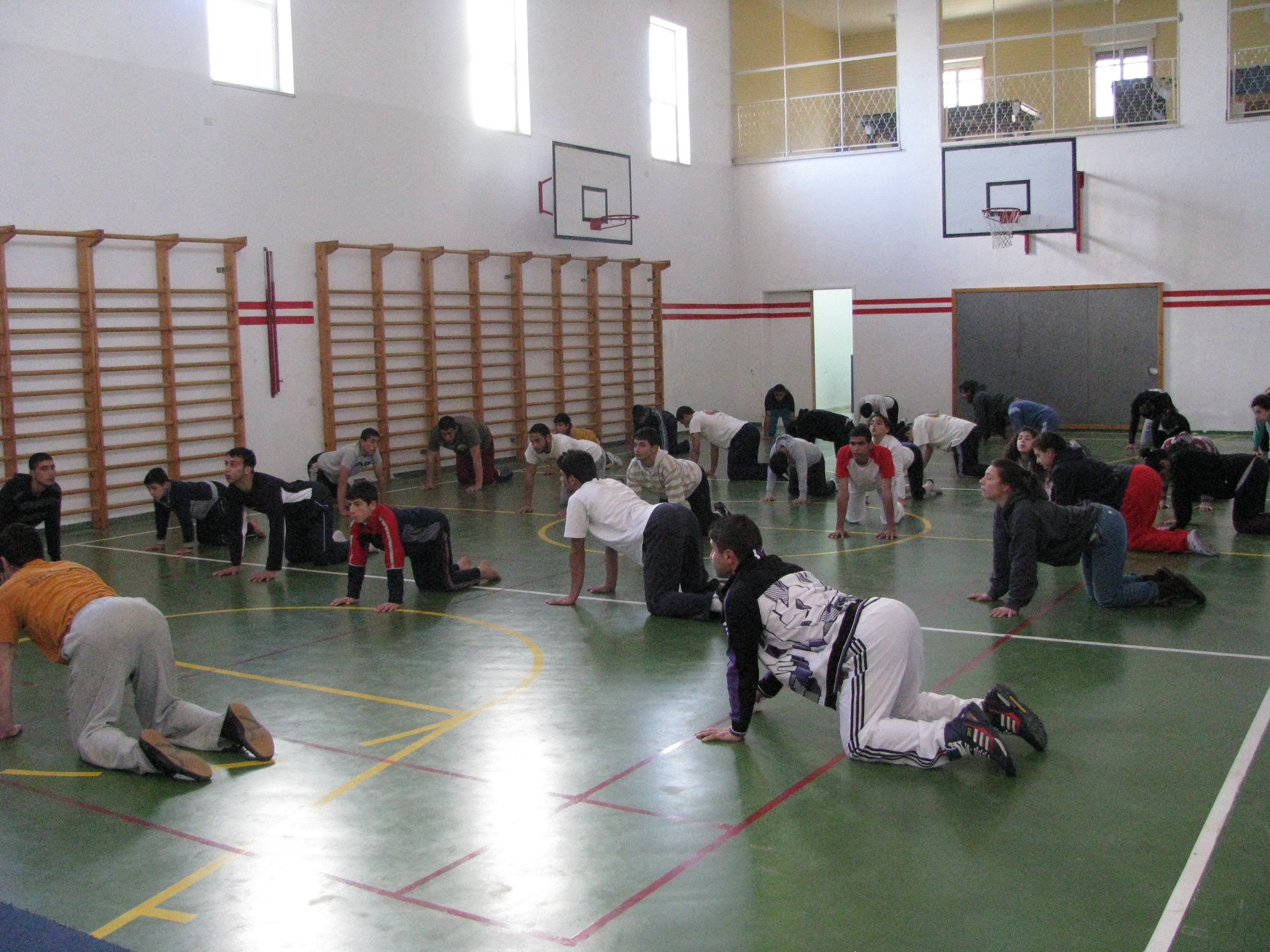 A colour photograph of a performance by an Irish team in coordination with the Palestinian Circus School.
