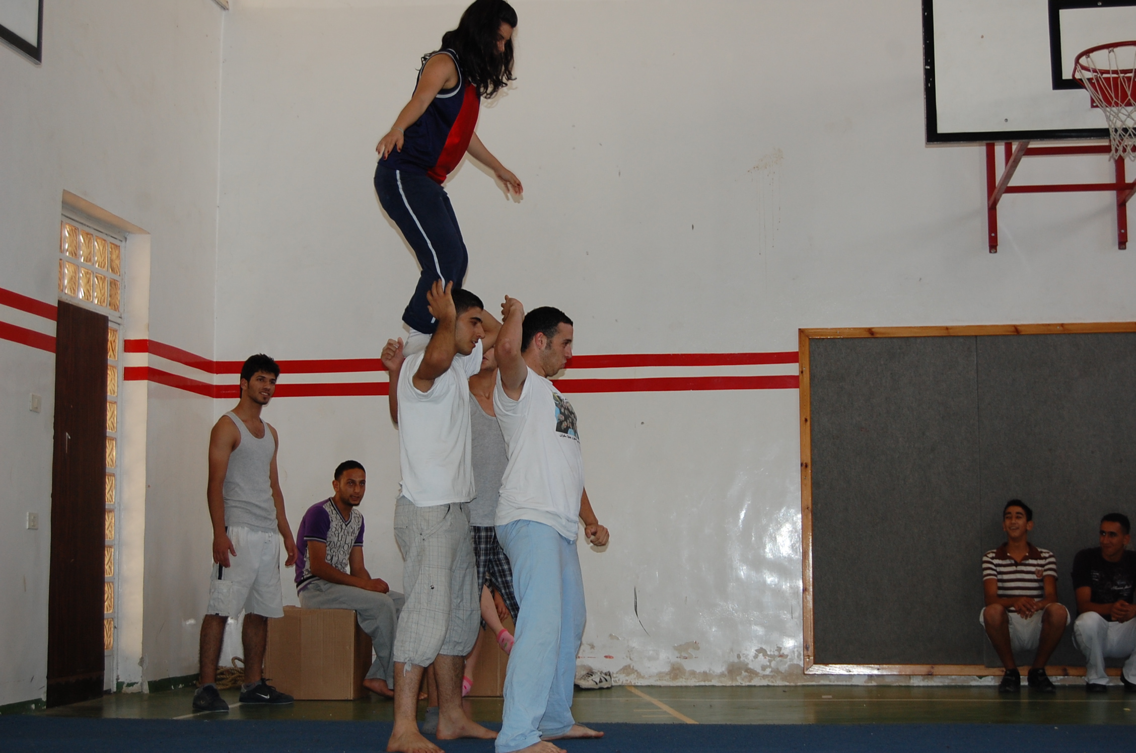صورة ملونة من من تدريبات المدرسة الصيفية التي تقيمها "مدرسة سيرك فلسطين".