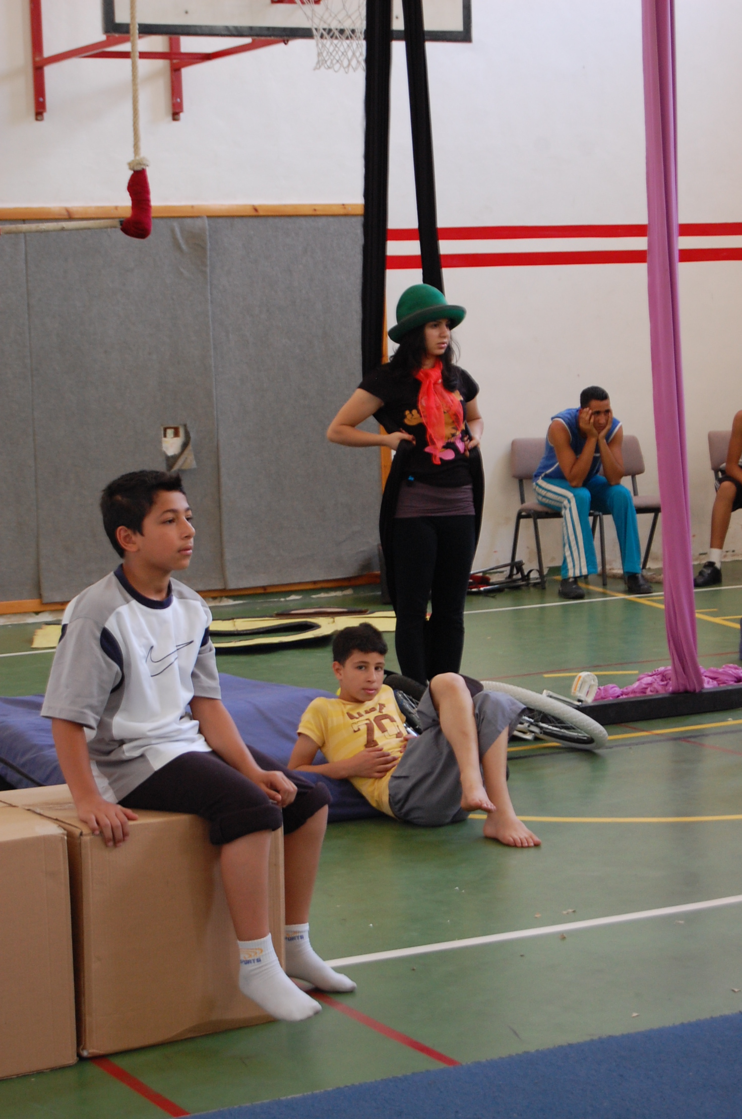 صورة ملونة من من تدريبات المدرسة الصيفية التي تقيمها "مدرسة سيرك فلسطين".