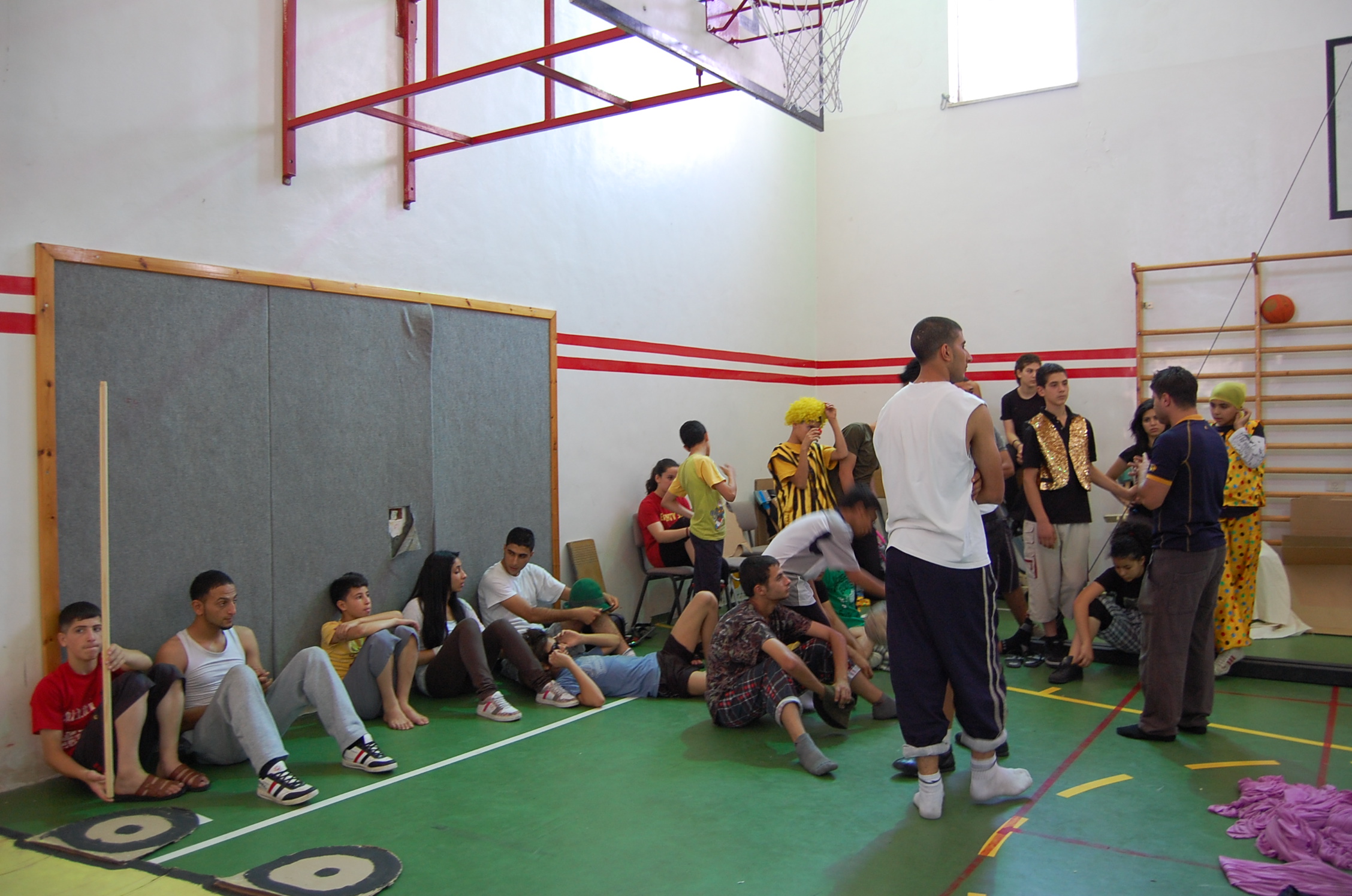 صورة ملونة من من تدريبات المدرسة الصيفية التي تقيمها "مدرسة سيرك فلسطين".