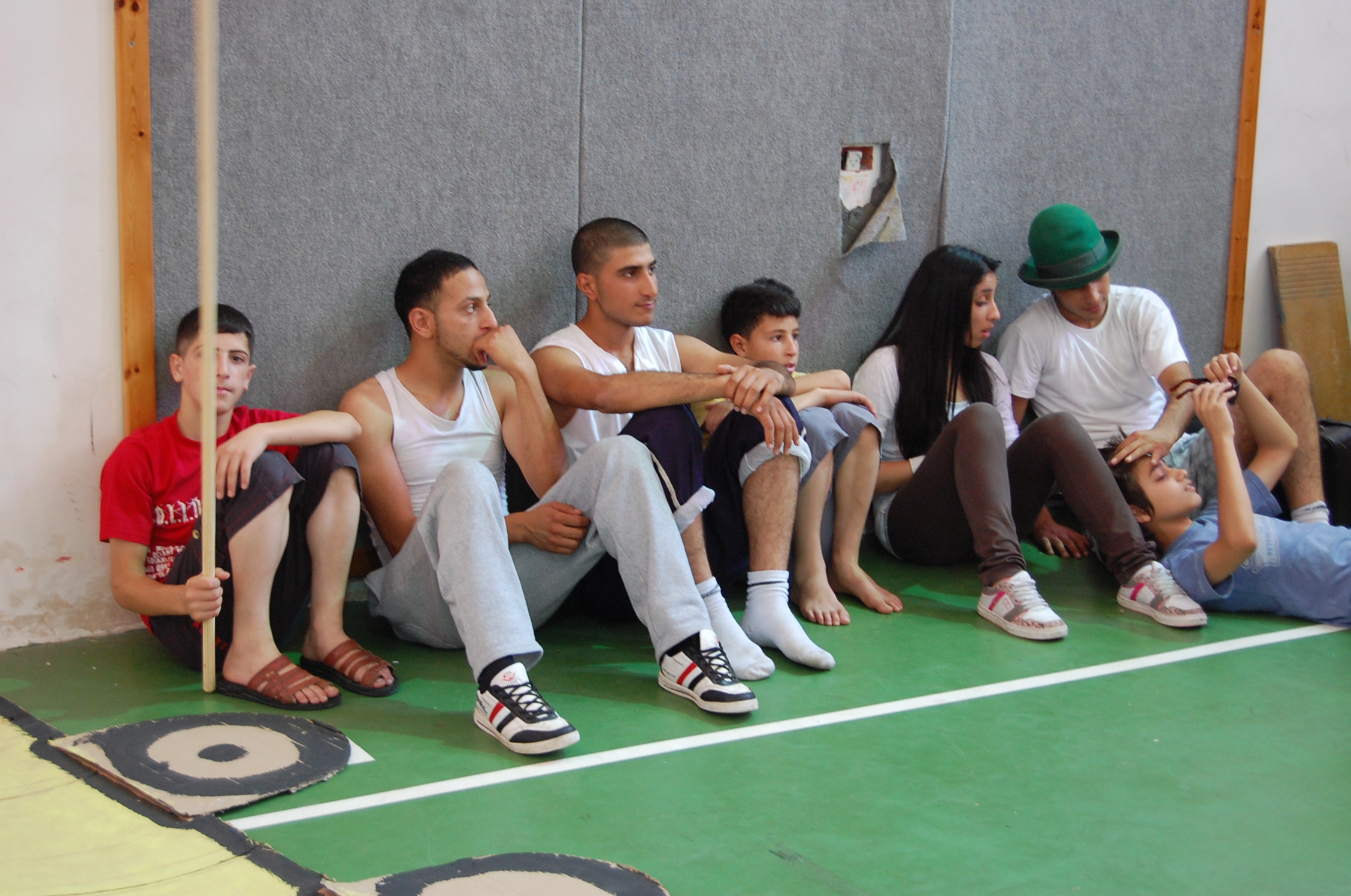 صورة ملونة من من تدريبات المدرسة الصيفية التي تقيمها "مدرسة سيرك فلسطين".