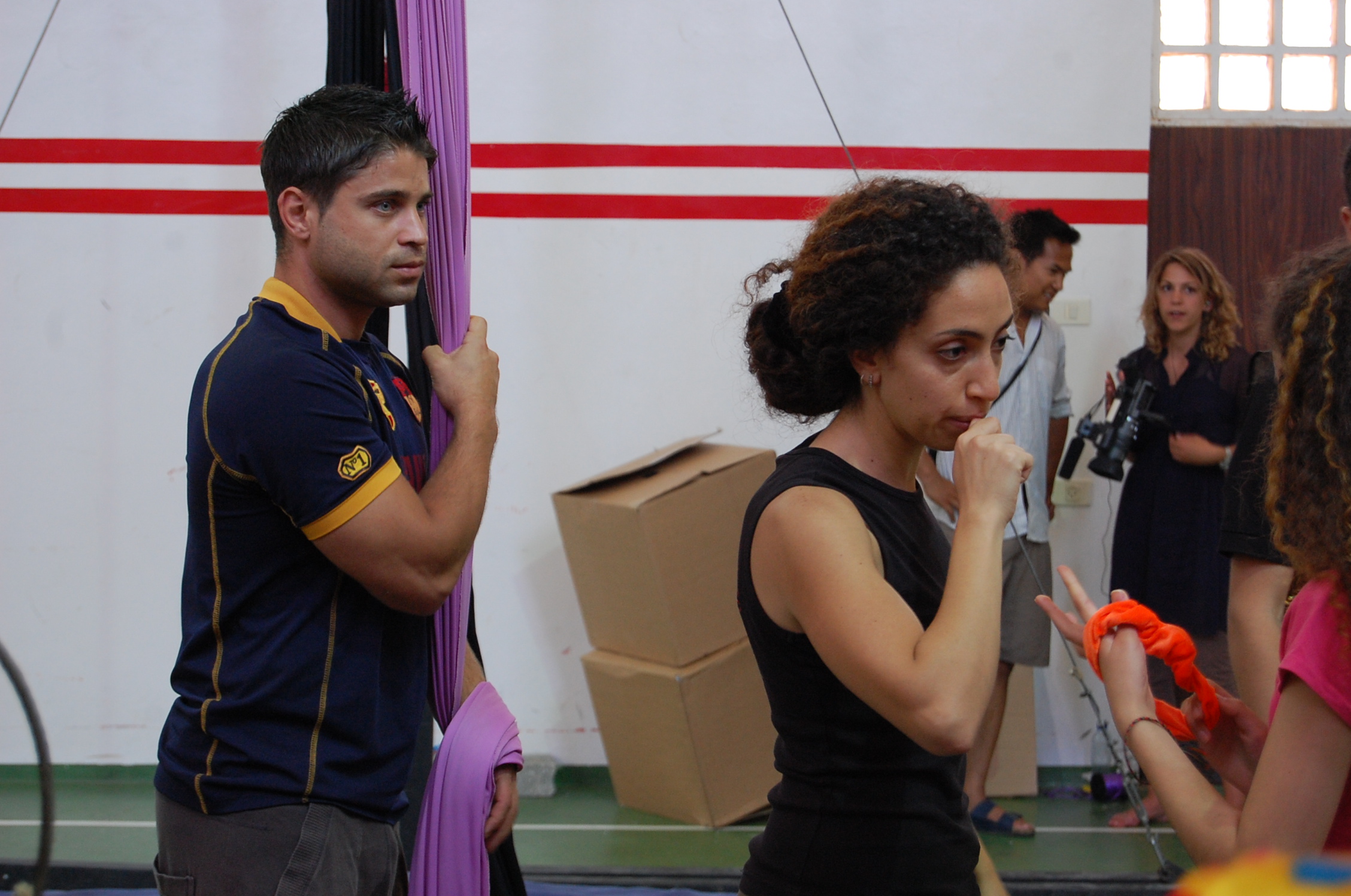 صورة ملونة من من تدريبات المدرسة الصيفية التي تقيمها "مدرسة سيرك فلسطين".