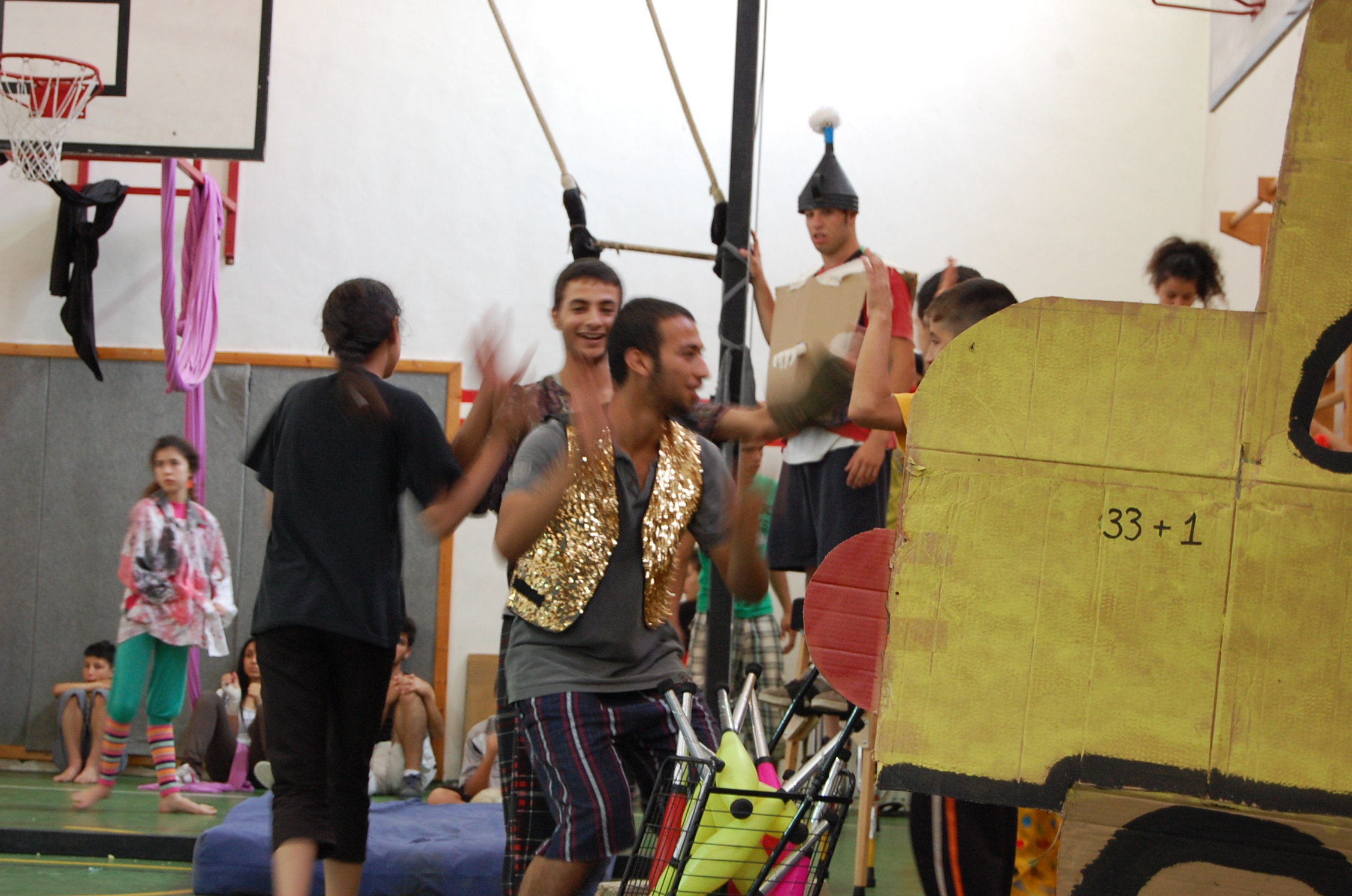 صورة ملونة من من تدريبات المدرسة الصيفية التي تقيمها "مدرسة سيرك فلسطين".