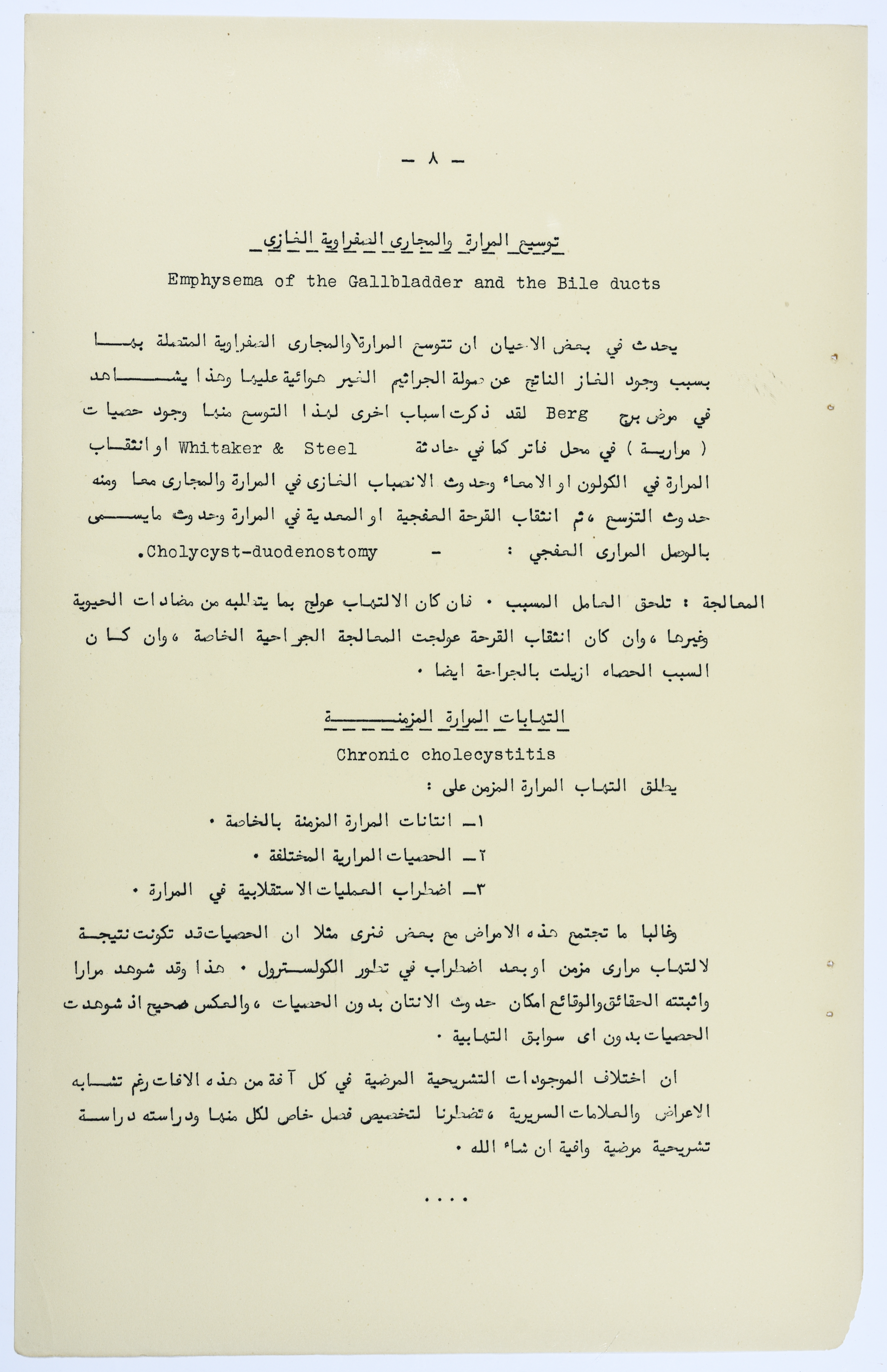 Amin al-Khatib's Scientific Research on Surgical Gallbladder Diseases a