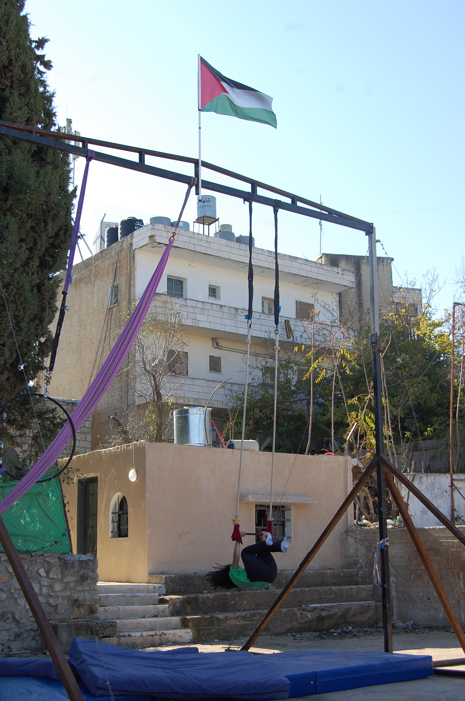 صورة ملونة ليوم مفتوح مع مسيرة فنية في بيرزيت، وهو بمثابة يوم لكل طلبة السيرك في فلسطين من بيرزيت، رام الله، الفارعة، الجلزون، جنين، القدس، الخليل. وتكون المسيرة بمثابة عرض فني لكل ما تم تعلمه.