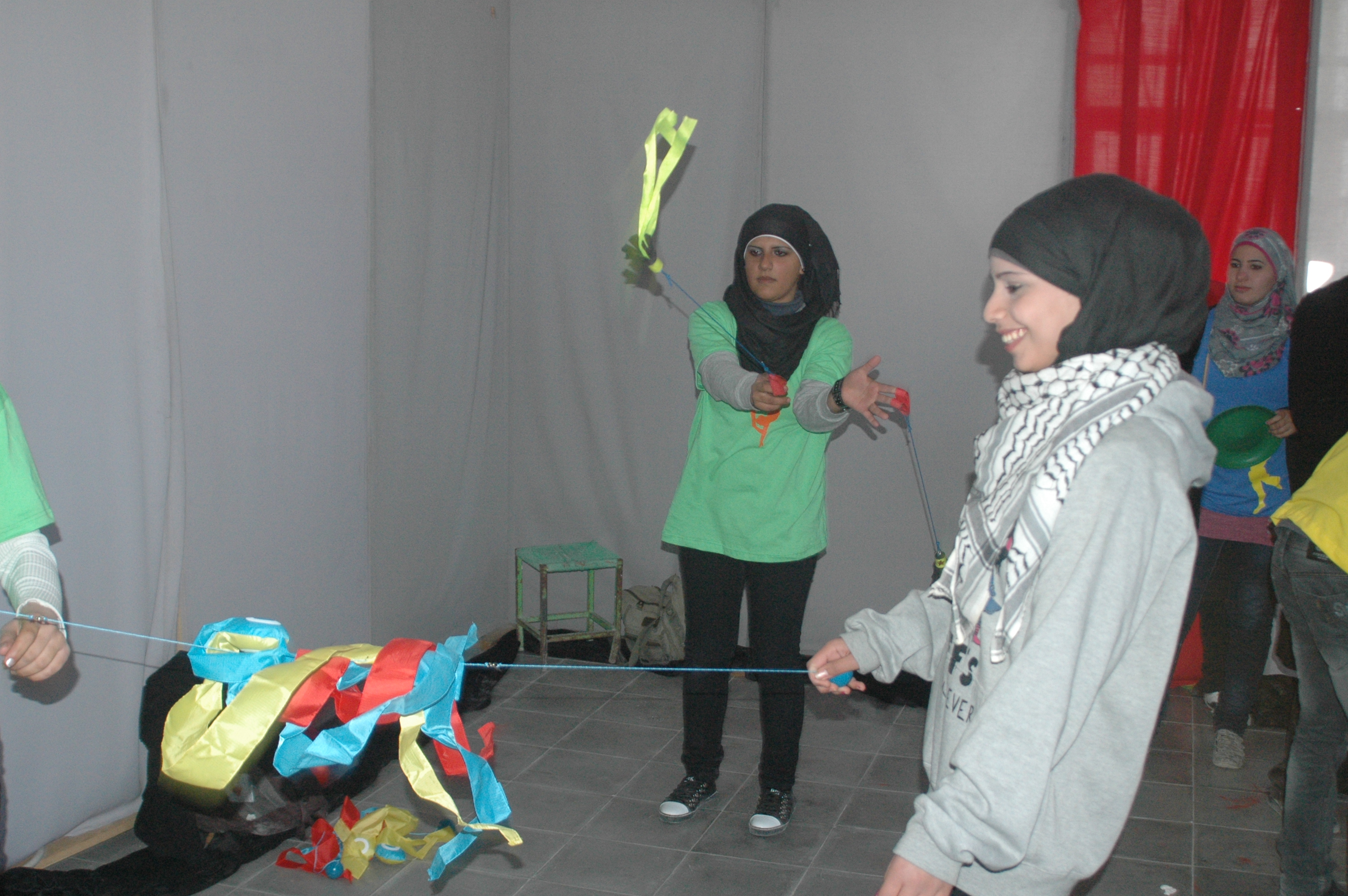 صورة ملونة ليوم مفتوح مع مسيرة فنية في بيرزيت، وهو بمثابة يوم لكل طلبة السيرك في فلسطين من بيرزيت، رام الله، الفارعة، الجلزون، جنين، القدس، الخليل. وتكون المسيرة بمثابة عرض فني لكل ما تم تعلمه.