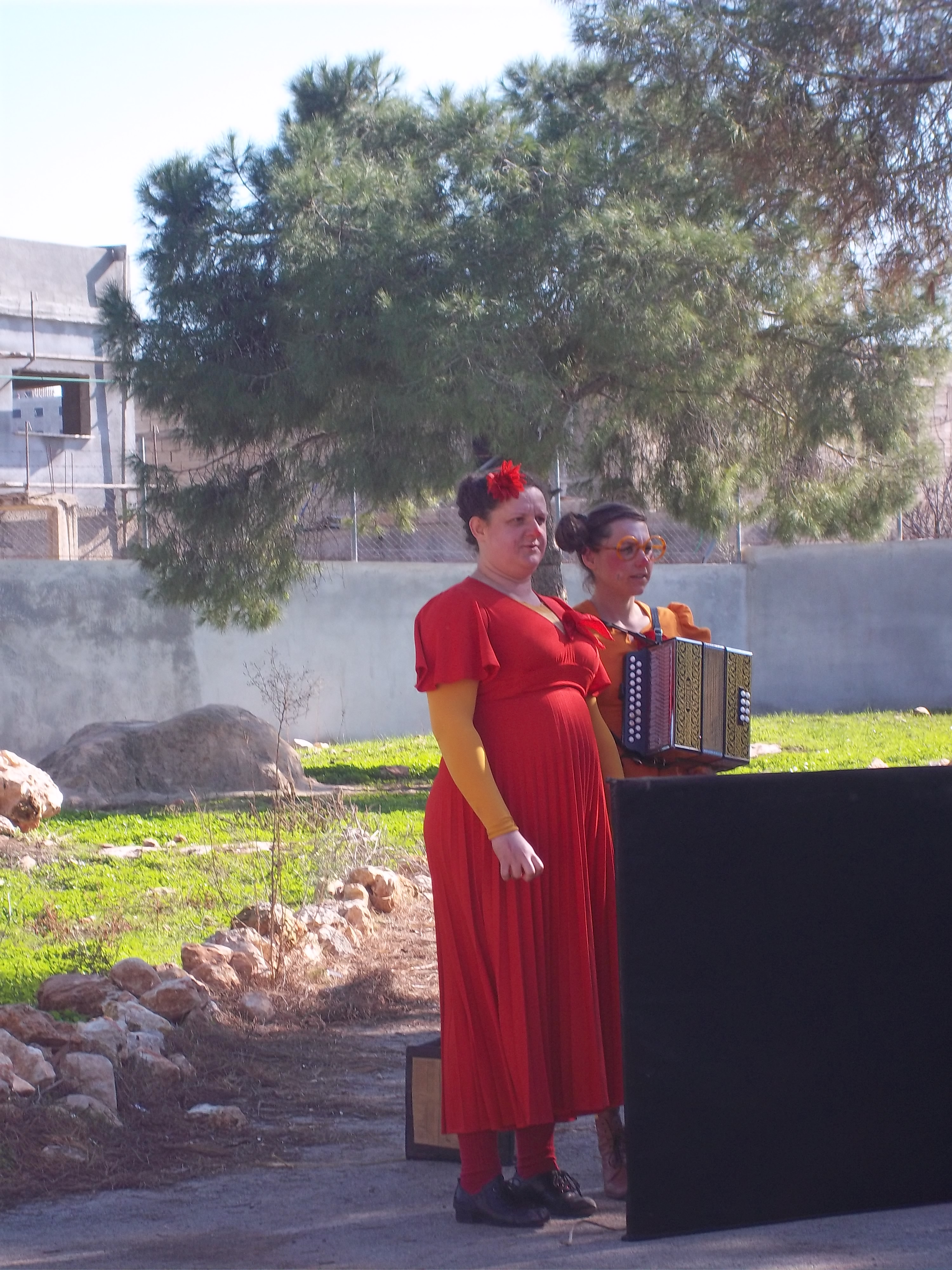 Taken in 2011, this colour photograph shows the Clowns Without Borders Belgium festival at the Social Center for Girls Rehabilitation in Jenin.