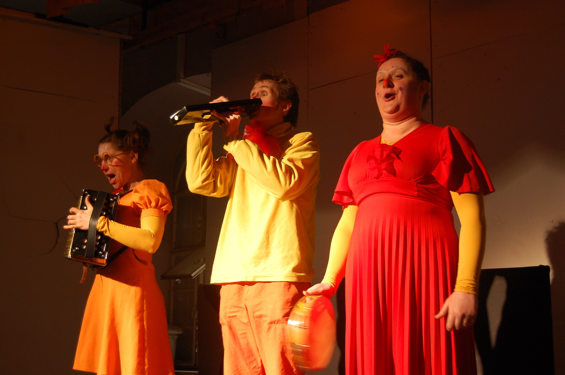 A colour photograph of a performance by a Belgian circus troupe hosted by the Palestinian Circus School.