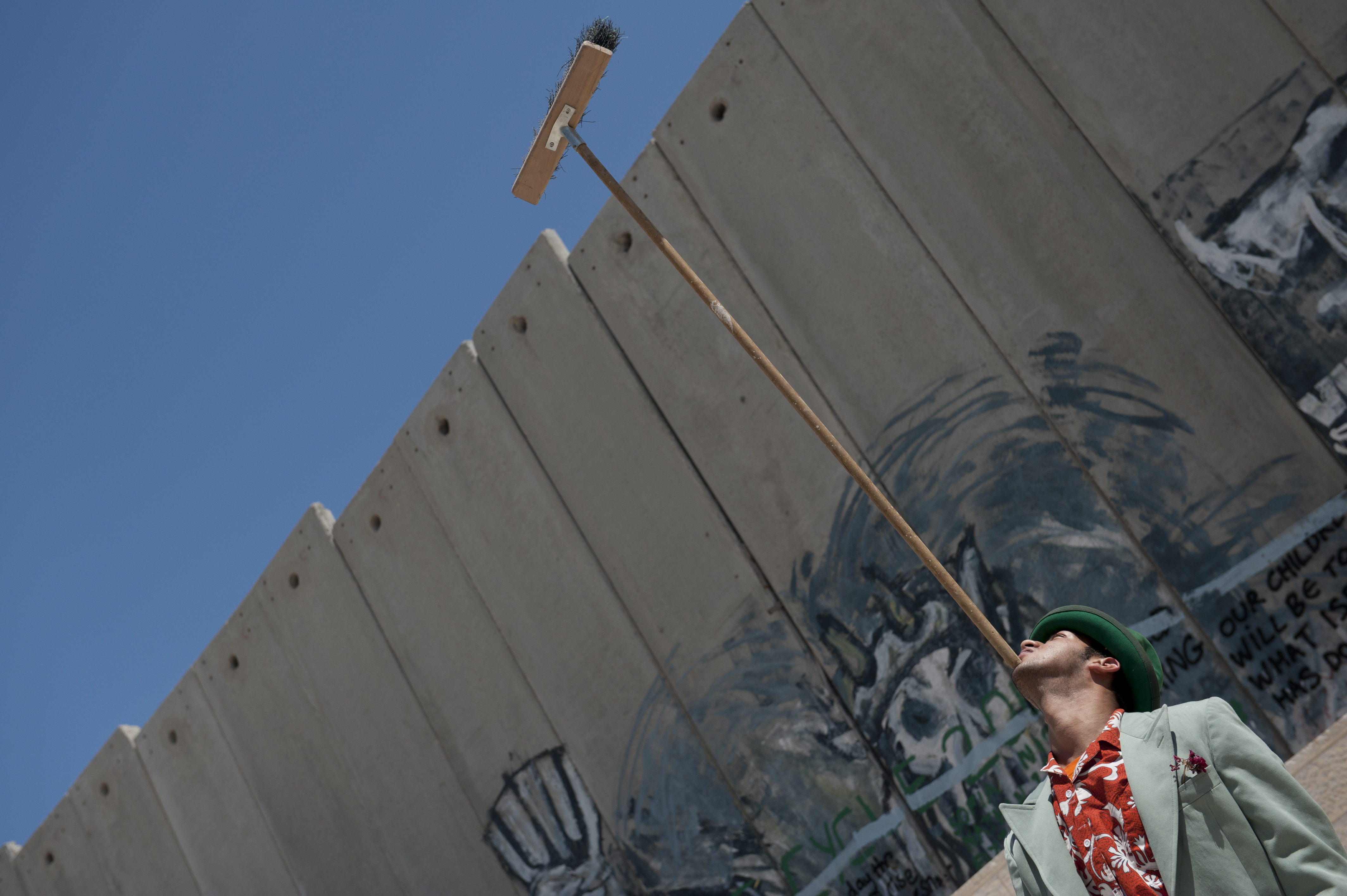 Taken in 2011, this colour photograph shows the "Ahlam Lal Biʿ [Dreams for Sale]" show in Aida Refugee Camp, Bethlehem. The show featured Nur abu ar-Rub, Mohammad abu Taleb, Ahmad abu Taleb, and Muhamad Sanha.