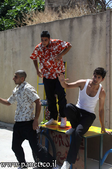 صورة ملونة من عرض فرقة مدرسة سيرك فلسطين، فيالمركز الثقافي الألماني الفرنسي فيرام الله، حمل العرض اسم احلام للبيع. أحلام للبيع: هو الإنتاج الثالث لمدرسة سيرك فلسطين، تم إنتاجه عام 2010. أداء كل من: أحمد أبو طالب، محمد أبو طالب، محمد أبو سخا، ونور أبو الرب. تدريب وإخراج كل من: جاك جاكس، سيفيرين بيلليني، كريستا فاتكا، نايف عثمان وتوماس سوكولوفيتش. ديكور وأزياء: رامي عارضة.