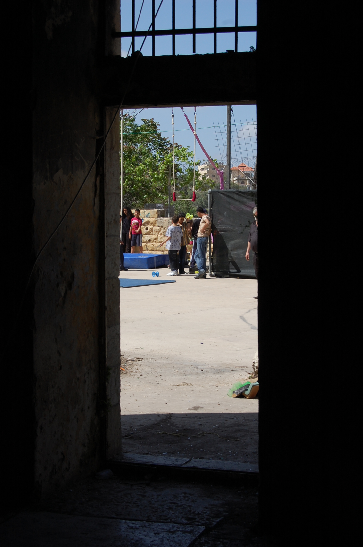 صورة ملونة تظهر فيها فعاليات يوم مفتوح لمدرسة سيرك فلسطين في بيرزيت.