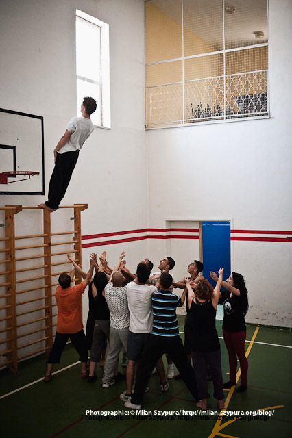 صورة ملونة من احدى عروض السيرك المتنقل الخاص بمدرسة سيرك فلسطين في صيف عام 2011.