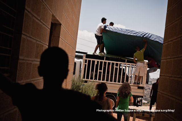 صورة ملونة من احدى عروض السيرك المتنقل الخاص بمدرسة سيرك فلسطين في صيف عام 2011.