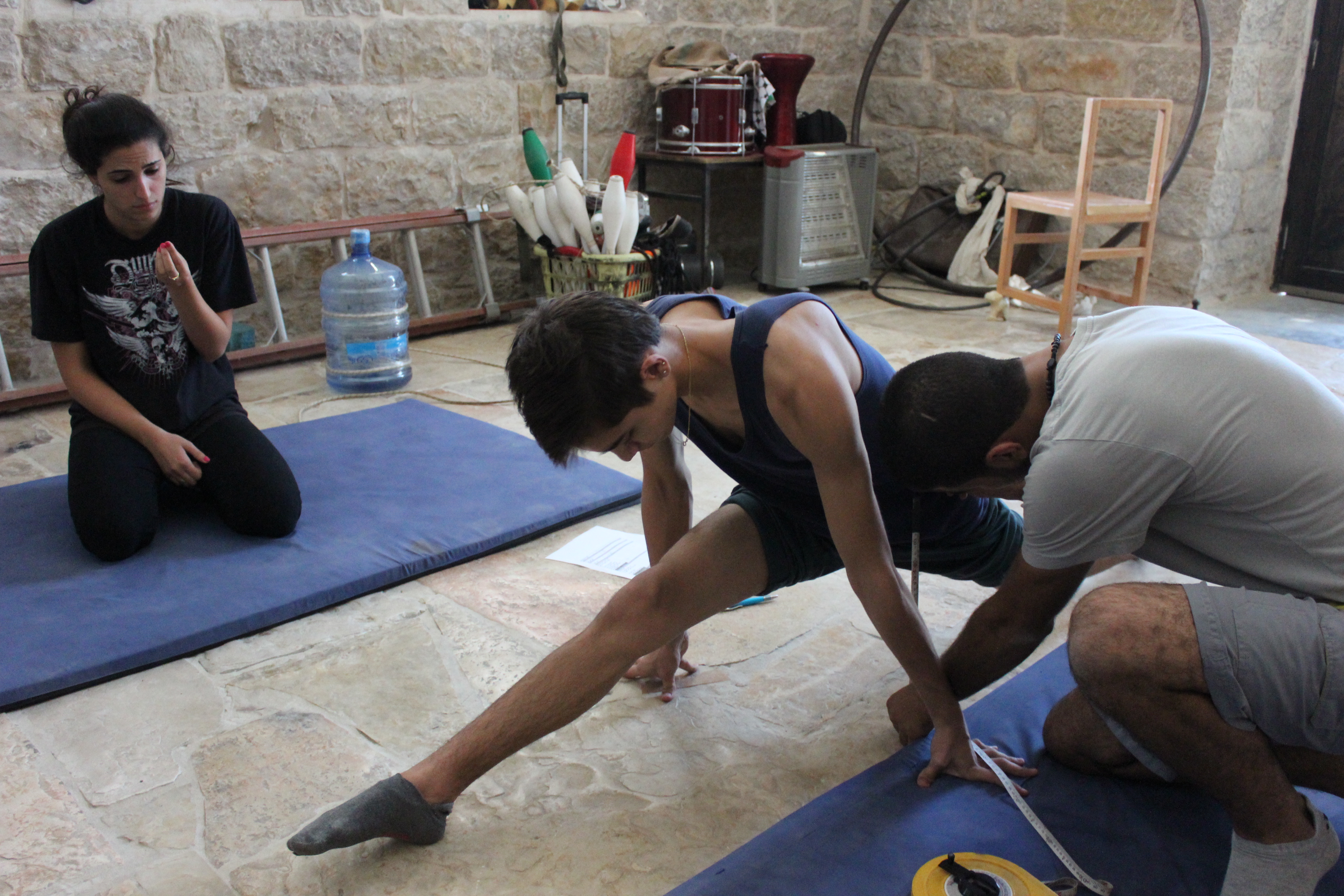 A colour photograph, taken in 2012, shows part of the preparations for the Palestinian Circus School's (PCS) show, 'Kol Saber' (eat cactus fruit).