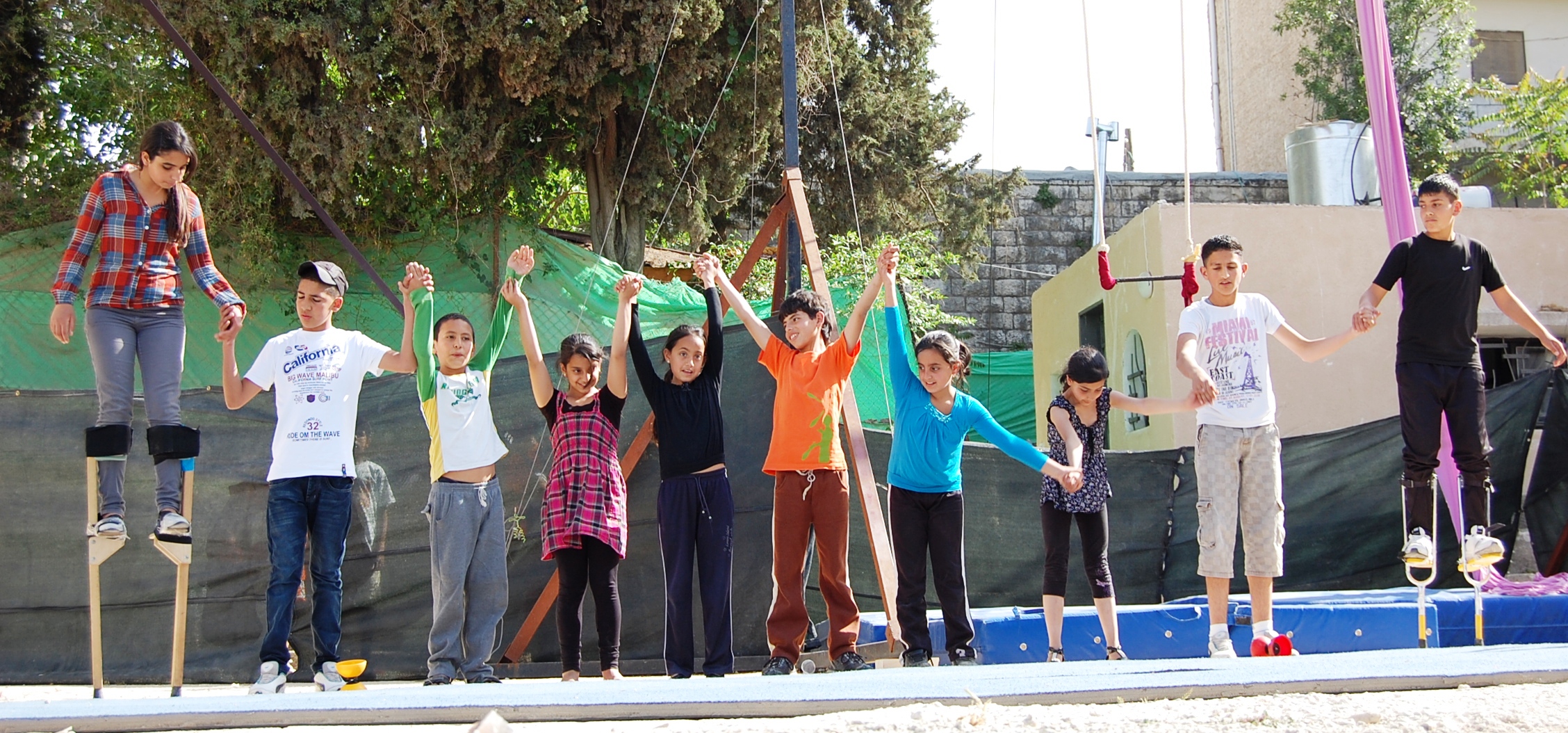 صورة ملونة من يوم مفتوح نظمته "مدرسة سيرك فلسطين" في بلدة بيرزيت.