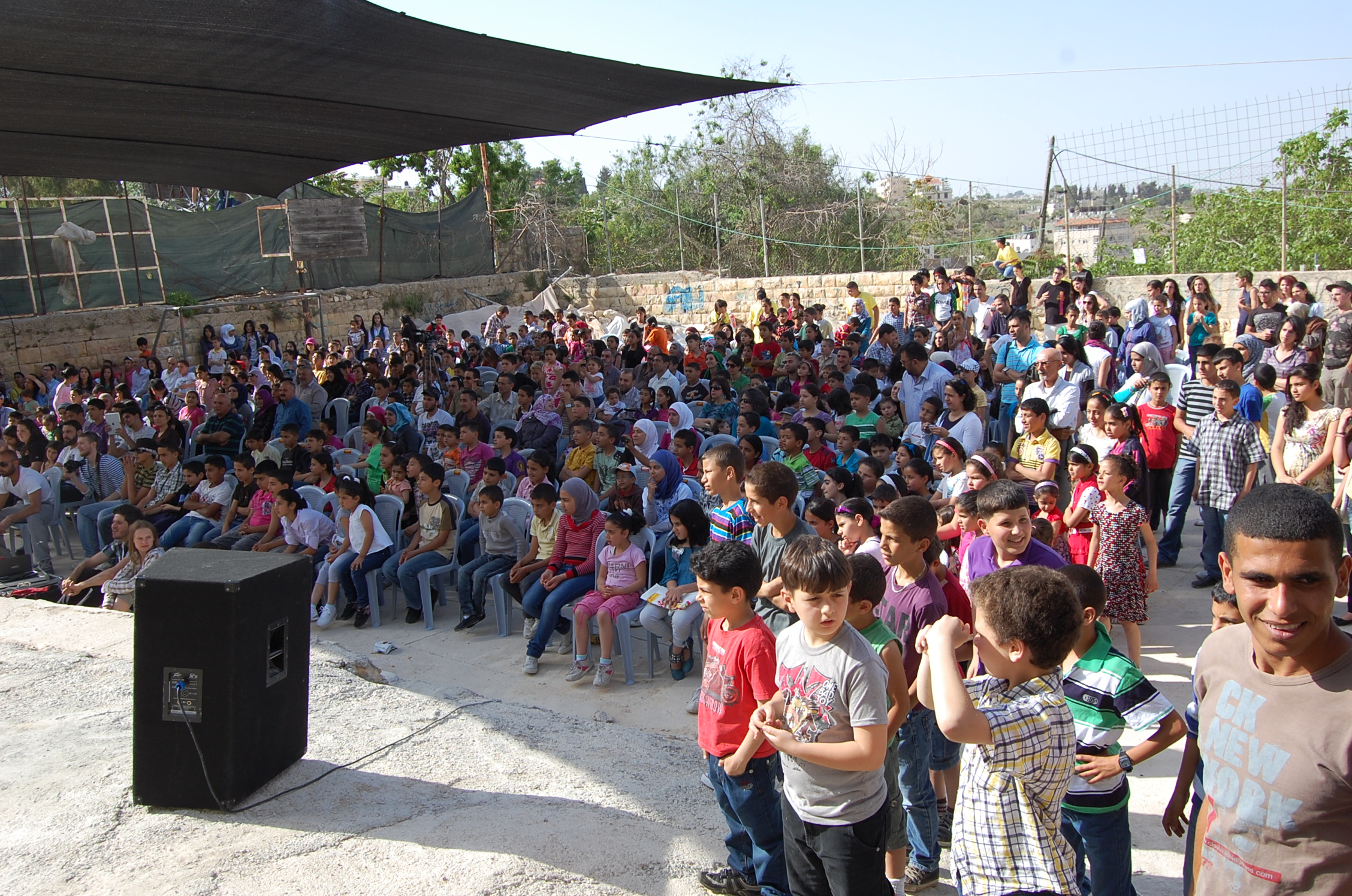 صورة ملونة من يوم مفتوح نظمته "مدرسة سيرك فلسطين" في بلدة بيرزيت.