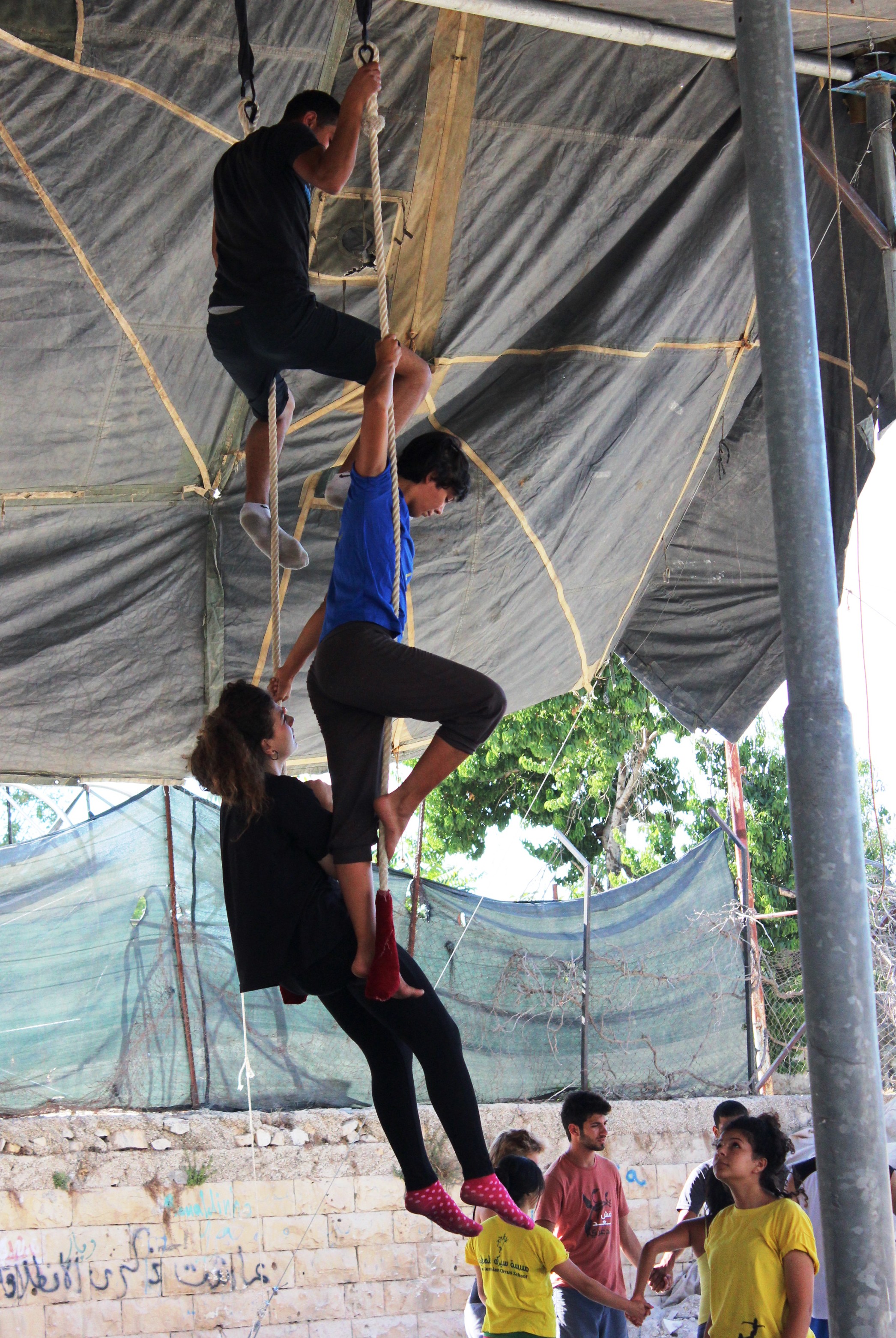 Taken in 2012, this is a colour photograph of a summer school that was organised by the Palestinian Circus School (PCS) in Birzeit, north of Israeli-occupied Ramallah.