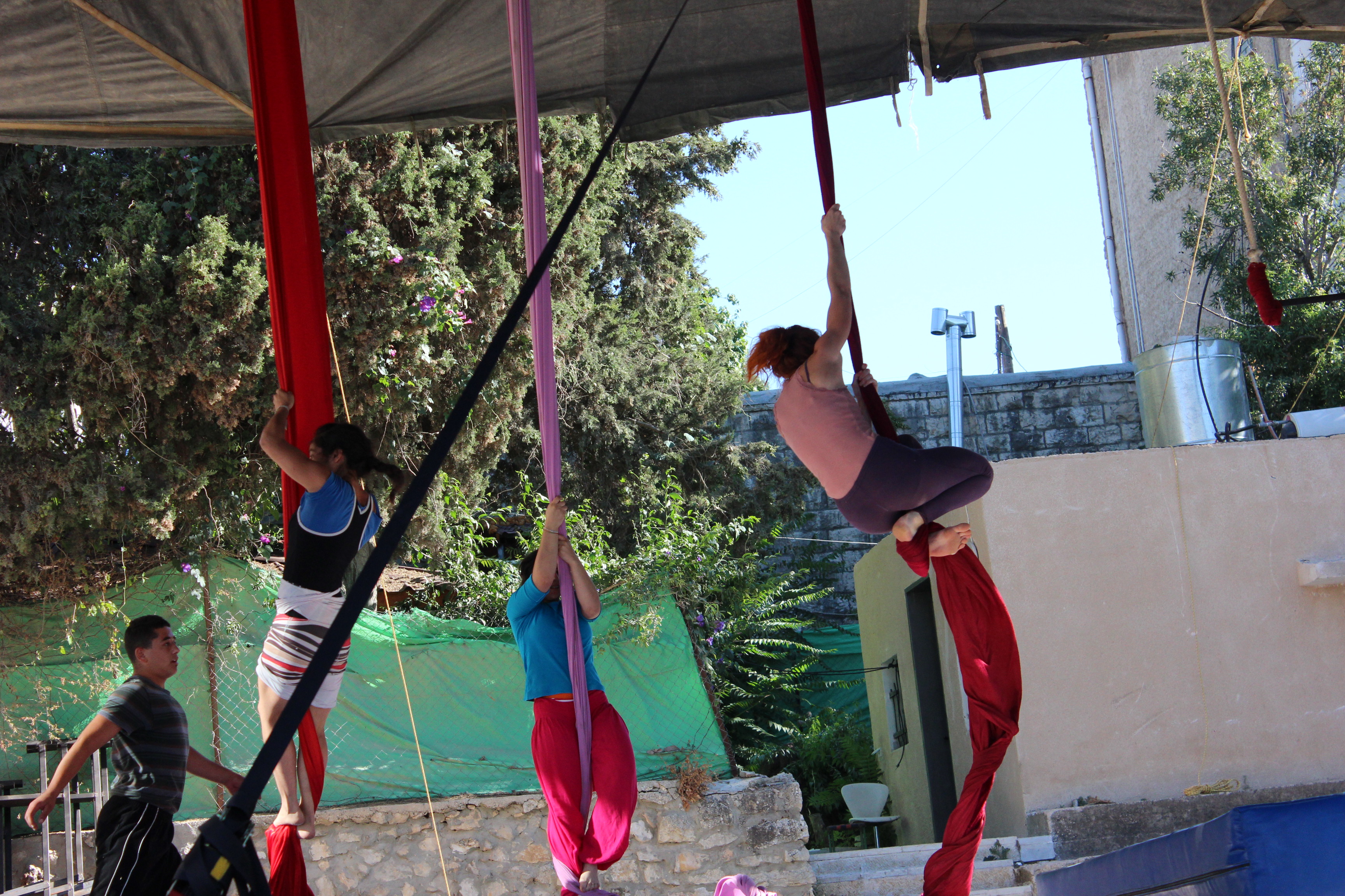 صورة ملوَّنة، التُقطت عام 2012، ترصد جانبًا من مدرسة صيفيَّة نظمتها مدرسة سيرك فلسطين في بلدة بيرزيت شماليّ مدينة رام الله المحتلَّة.