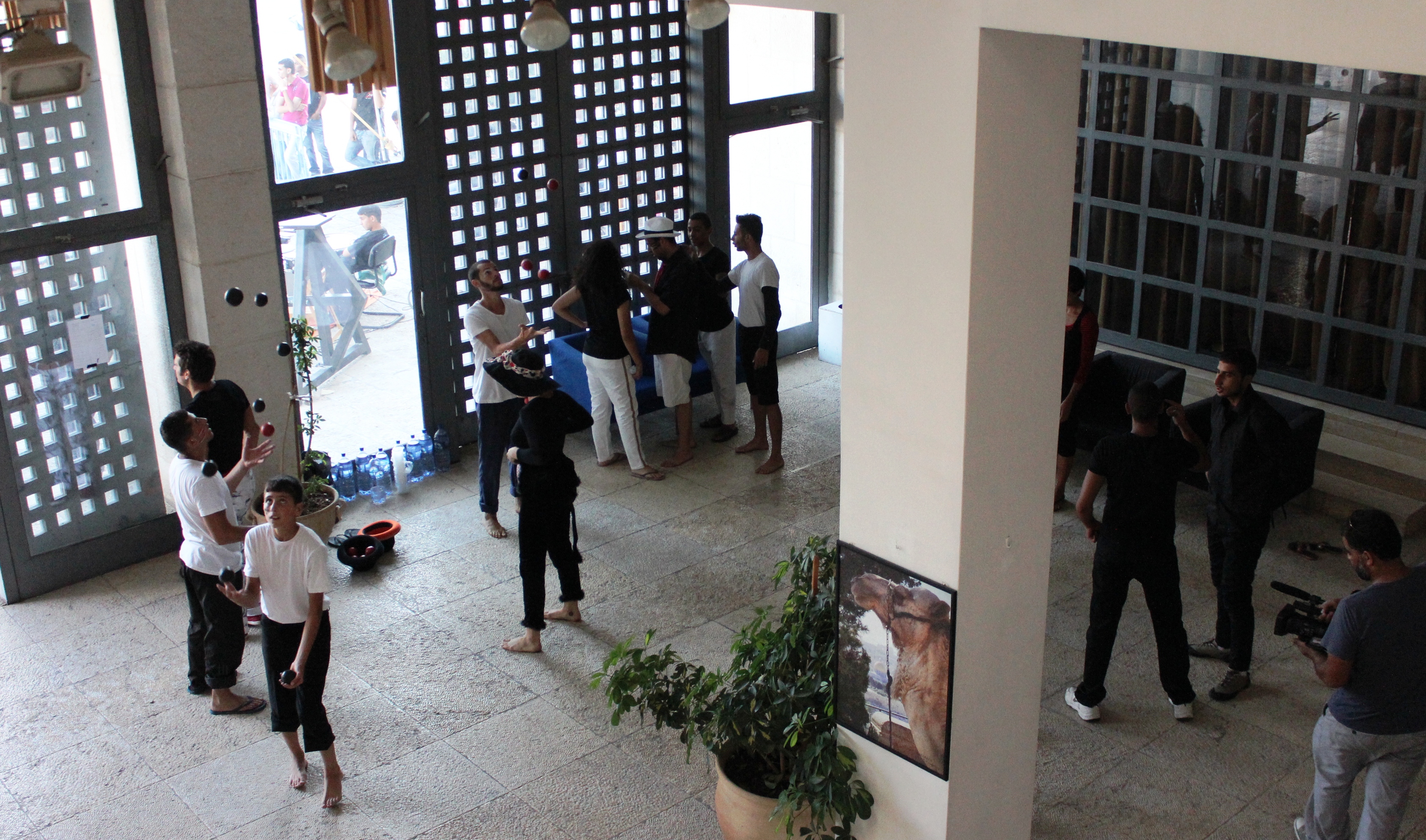 Taken in 2012, this is a colour photograph of a summer school that was organised by the Palestinian Circus School (PCS) in Birzeit, north of Israeli-occupied Ramallah.