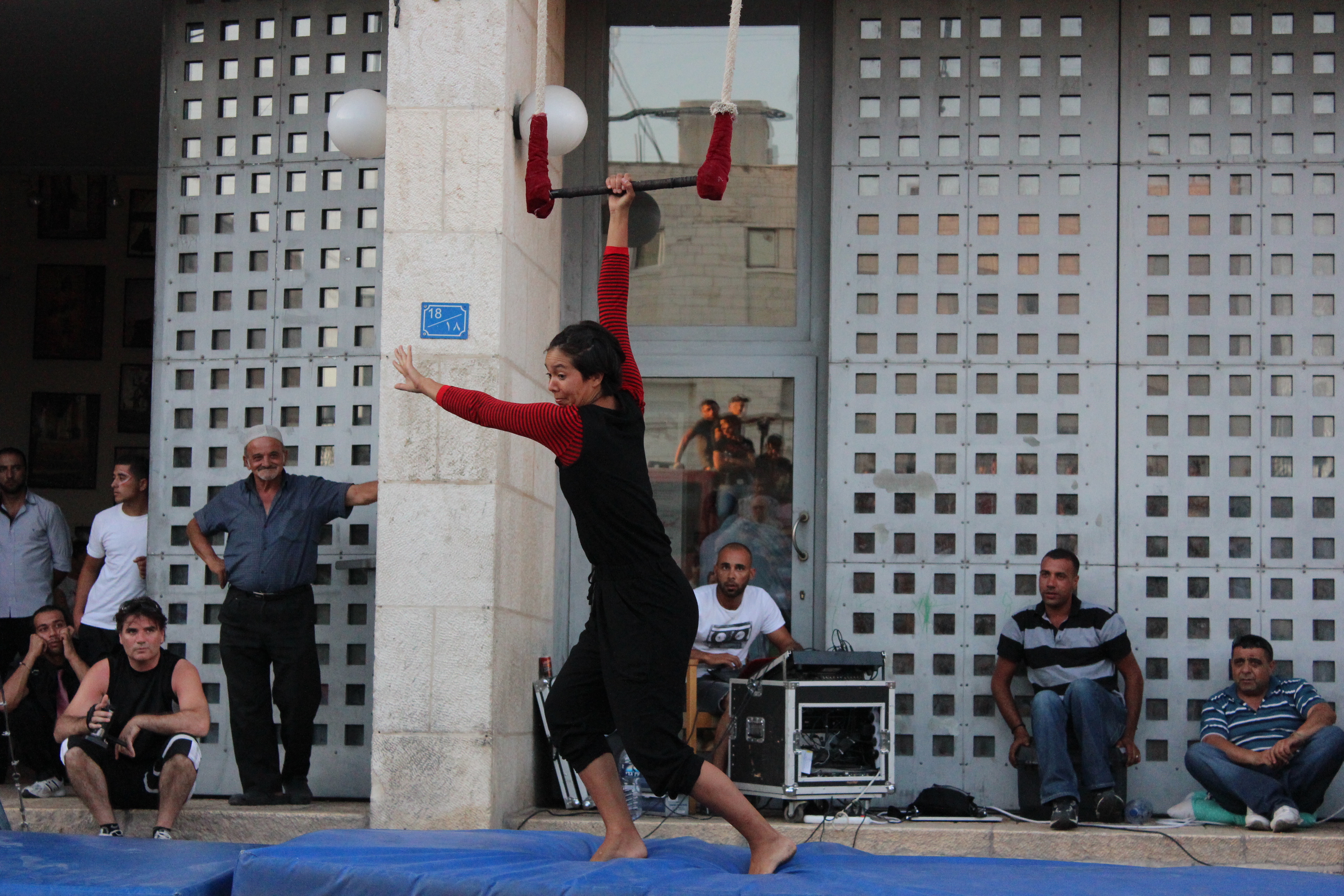 Taken in 2012, this is a colour photograph of a summer school that was organised by the Palestinian Circus School (PCS) in Birzeit, north of Israeli-occupied Ramallah.