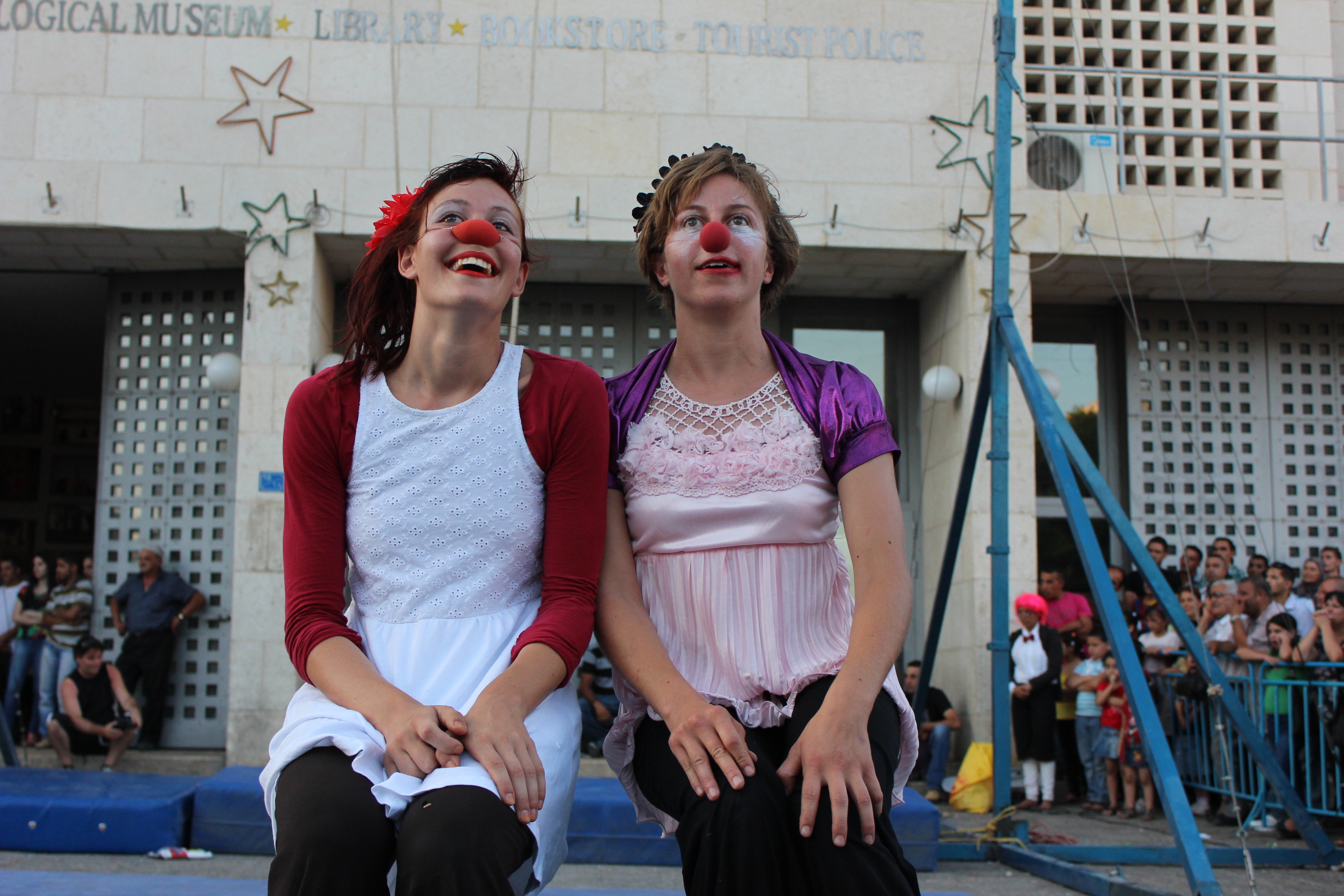 Taken in 2012, this is a colour photograph of a summer school that was organised by the Palestinian Circus School (PCS) in Birzeit, north of Israeli-occupied Ramallah.