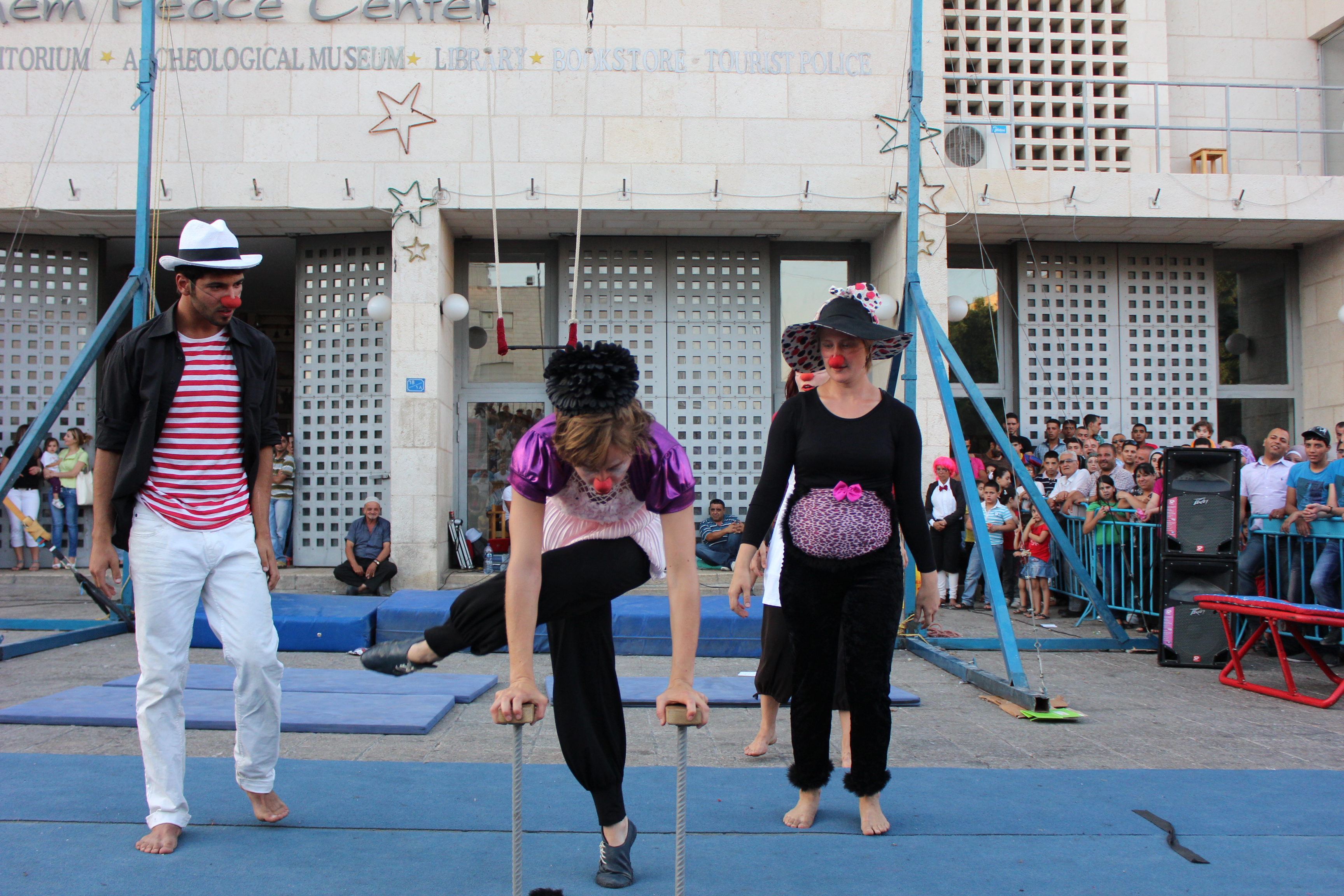 Taken in 2012, this is a colour photograph of a summer school that was organised by the Palestinian Circus School (PCS) in Birzeit, north of Israeli-occupied Ramallah.