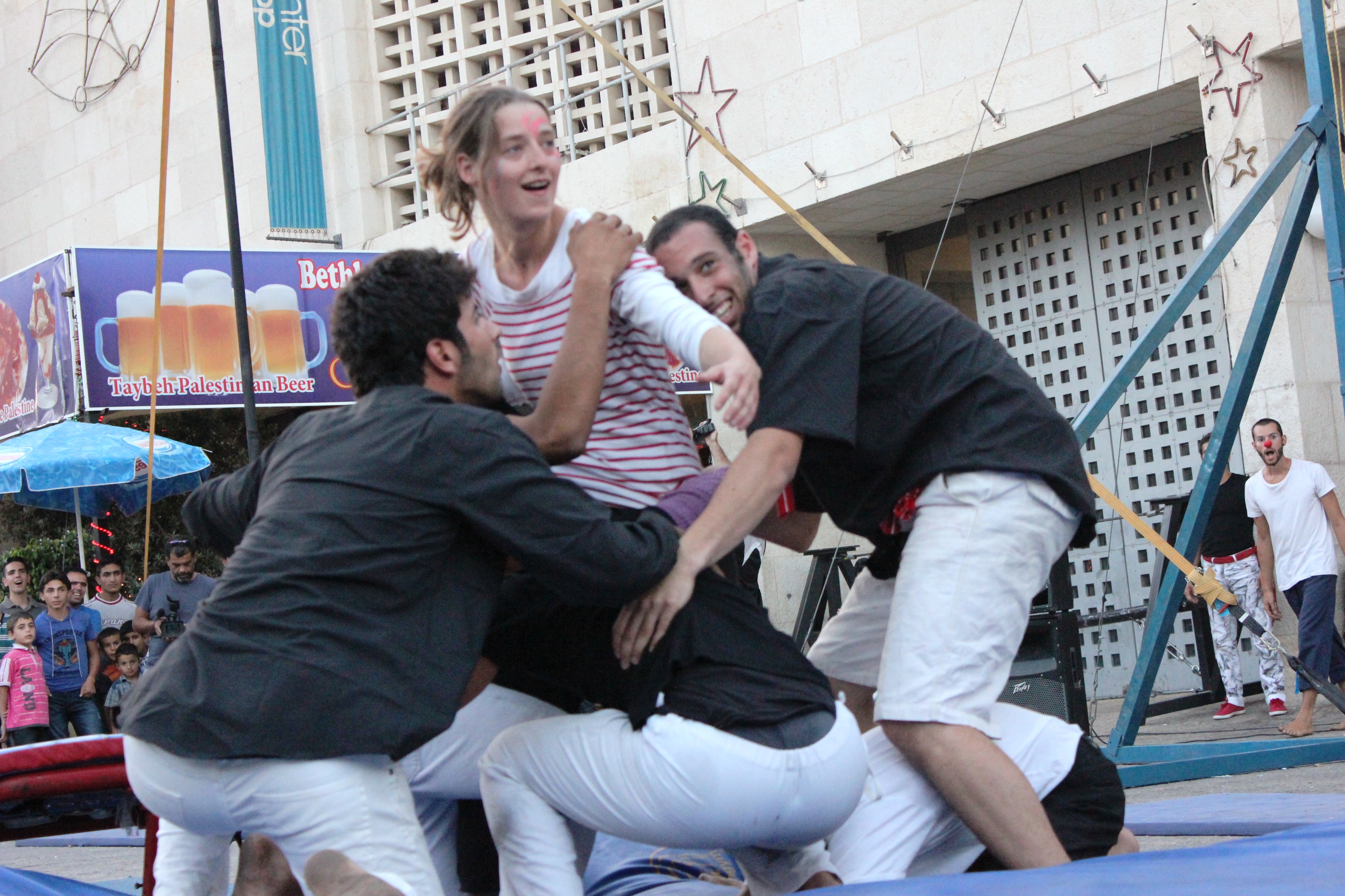 صورة ملوَّنة، التُقطت عام 2012، ترصد جانبًا من مدرسة صيفيَّة نظمتها مدرسة سيرك فلسطين في بلدة بيرزيت شماليّ مدينة رام الله المحتلَّة.