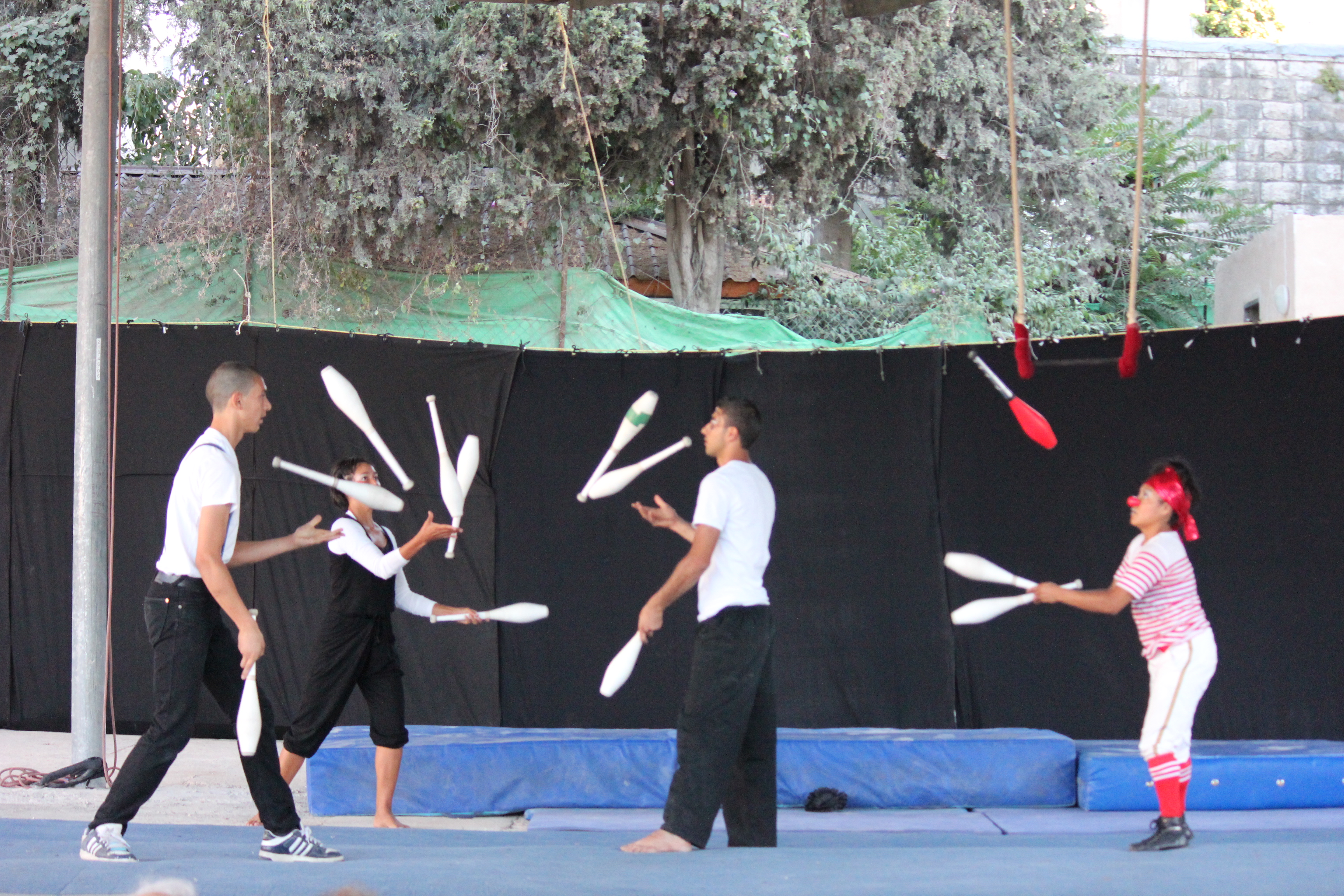 صورة ملوَّنة، التُقطت عام 2012، ترصد جانبًا من مدرسة صيفيَّة نظمتها مدرسة سيرك فلسطين في بلدة بيرزيت شماليّ مدينة رام الله المحتلَّة.