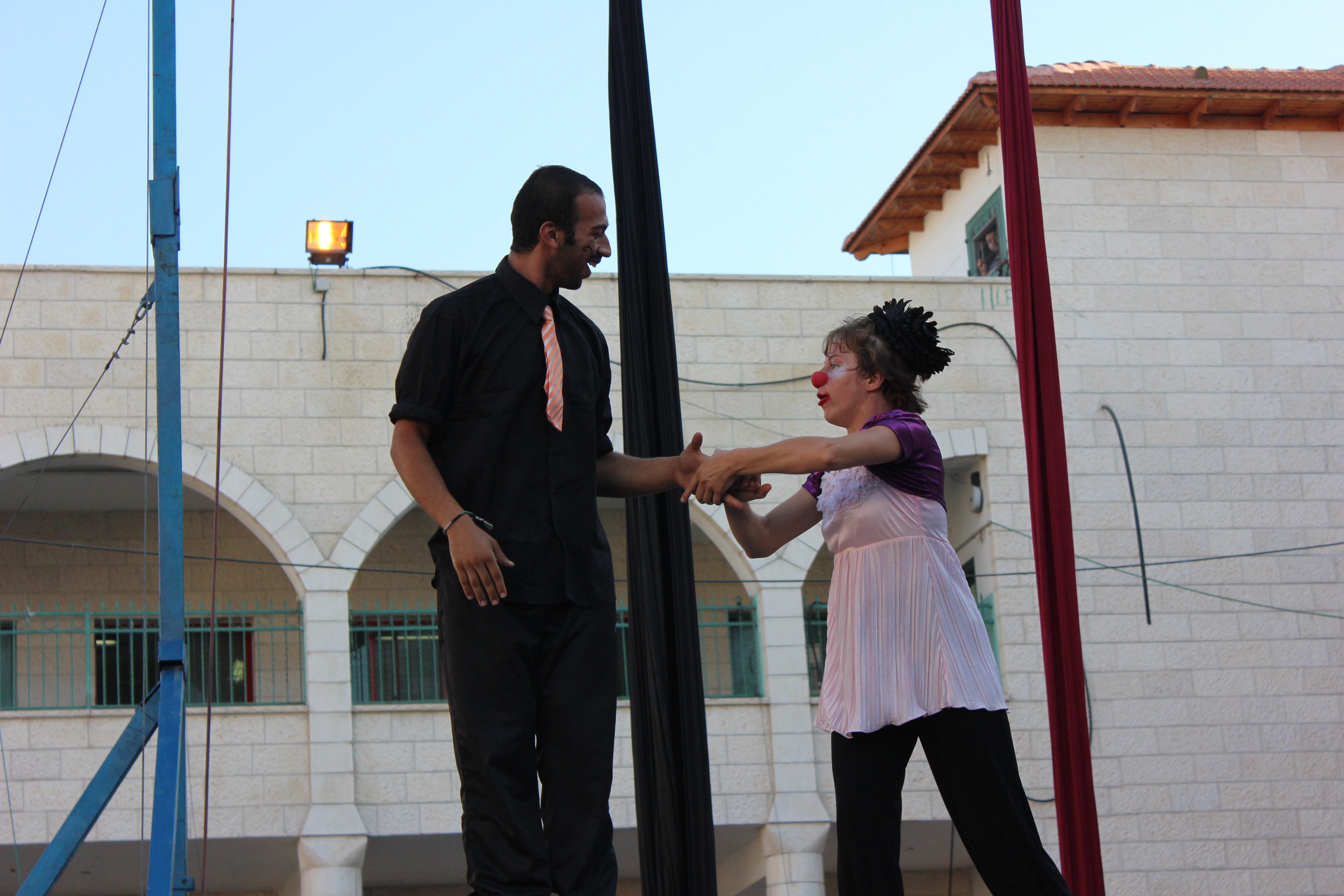صورة ملوَّنة، التُقطت عام 2012، ترصد جانبًا من مدرسة صيفيَّة نظمتها مدرسة سيرك فلسطين في بلدة بيرزيت شماليّ مدينة رام الله المحتلَّة.