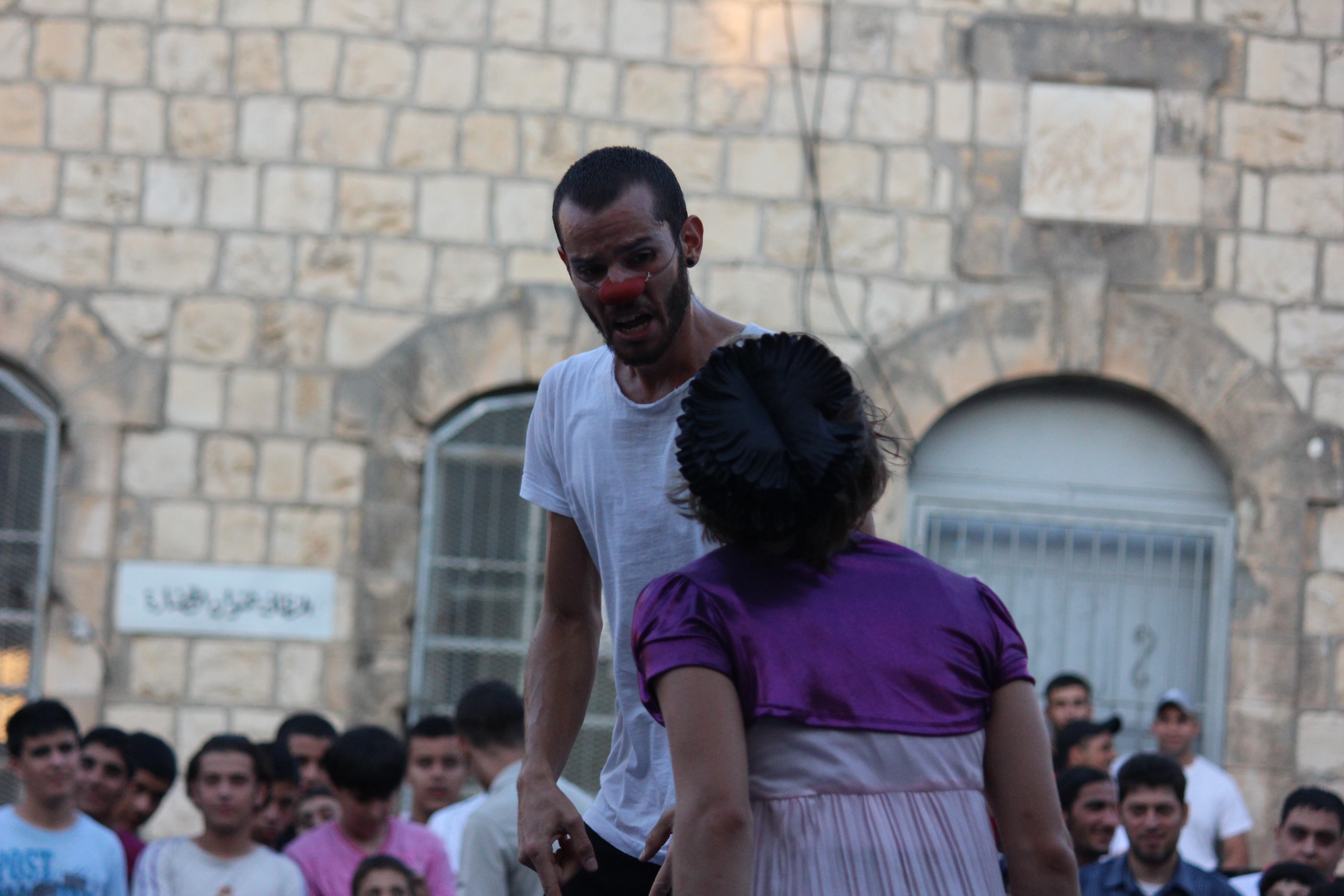 Taken in 2012, this is a colour photograph of a summer school that was organised by the Palestinian Circus School (PCS) in Birzeit, north of Israeli-occupied Ramallah.