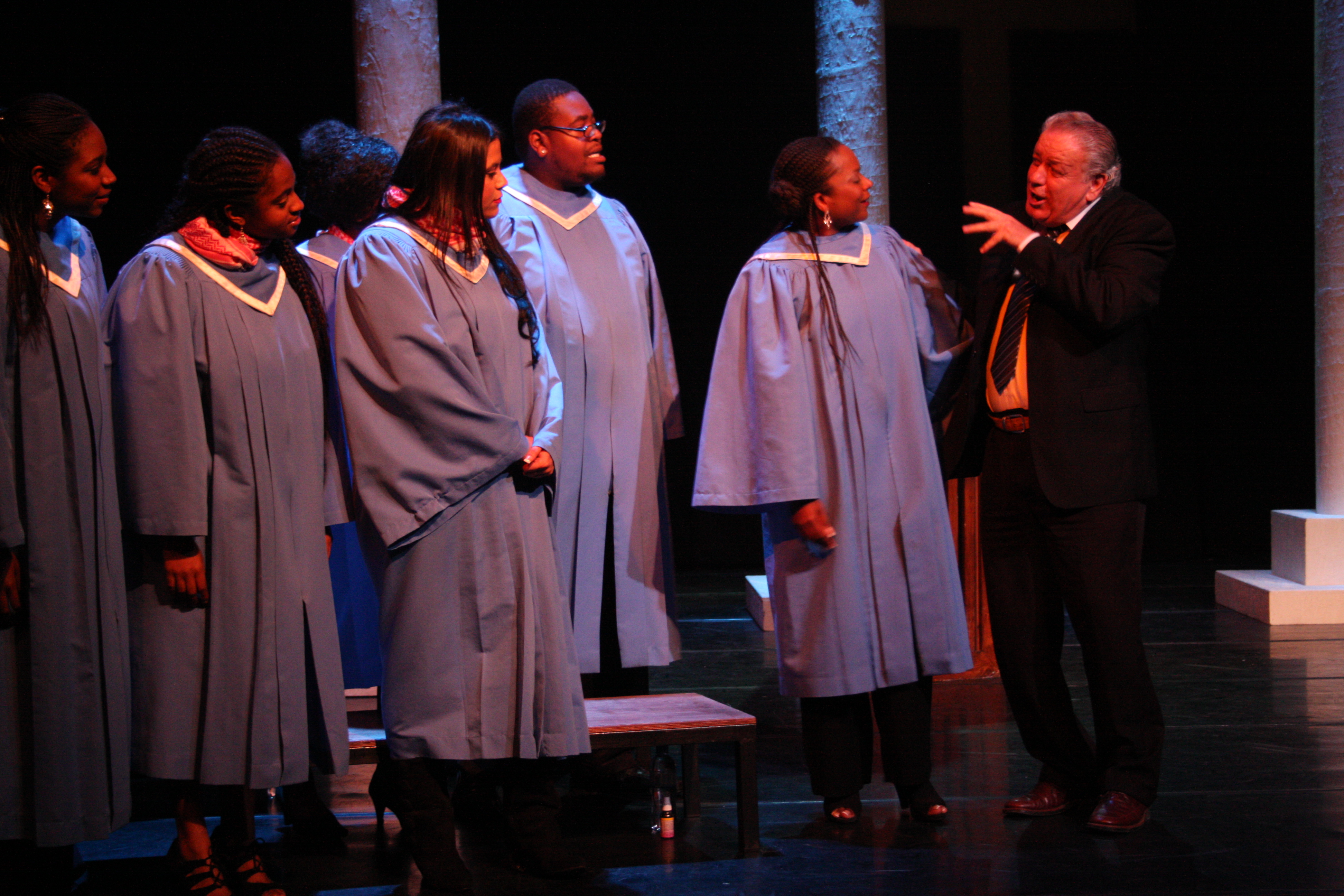 صورة ملونة من عرض مسرحية "محطات مارتن لوثر كنغ" في مسرح وسينماتك القصبة خلال مهرجان أيام المنارة المسرحية عام 2011.