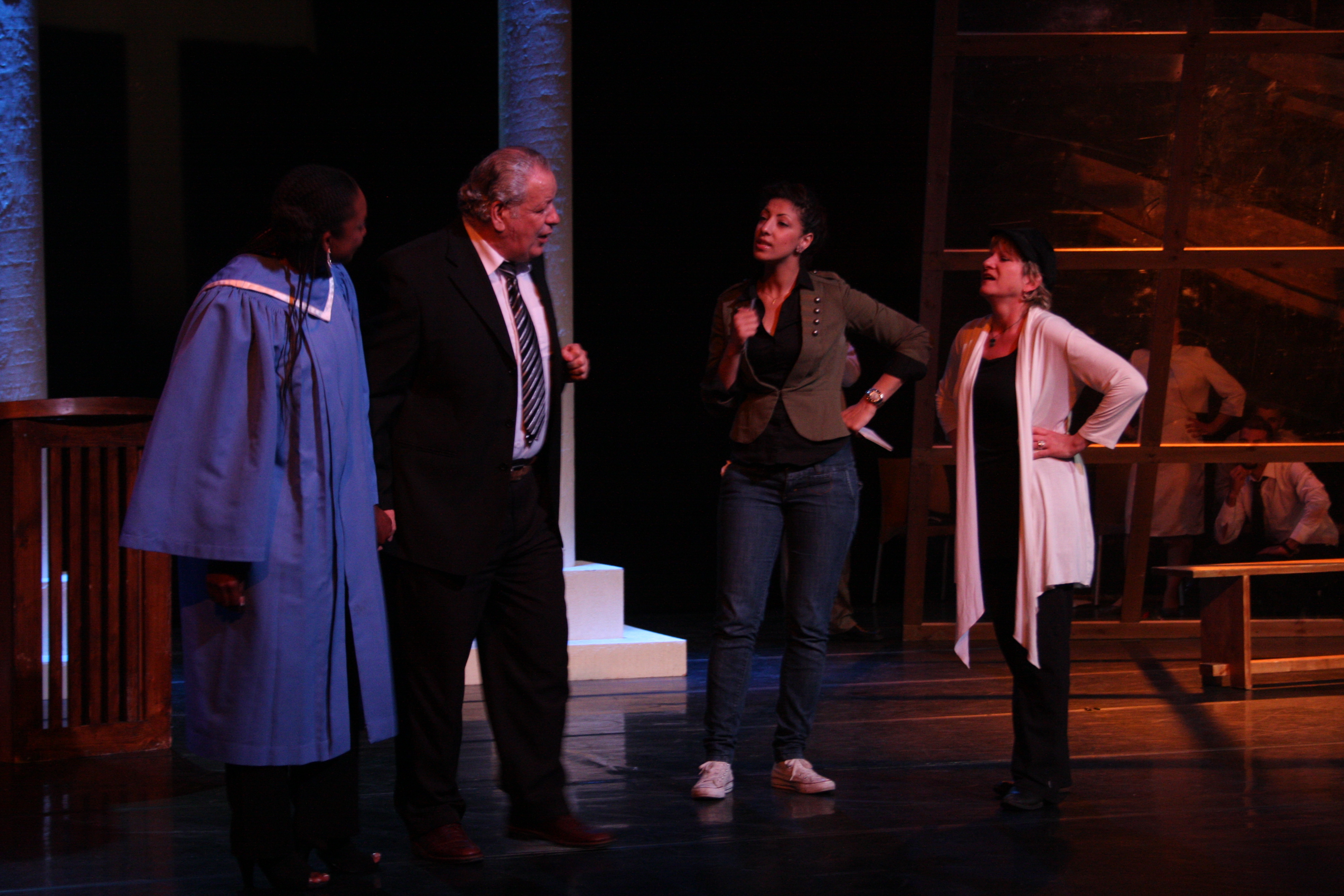 صورة ملونة من عرض مسرحية "محطات مارتن لوثر كنغ" في مسرح وسينماتك القصبة خلال مهرجان أيام المنارة المسرحية عام 2011.