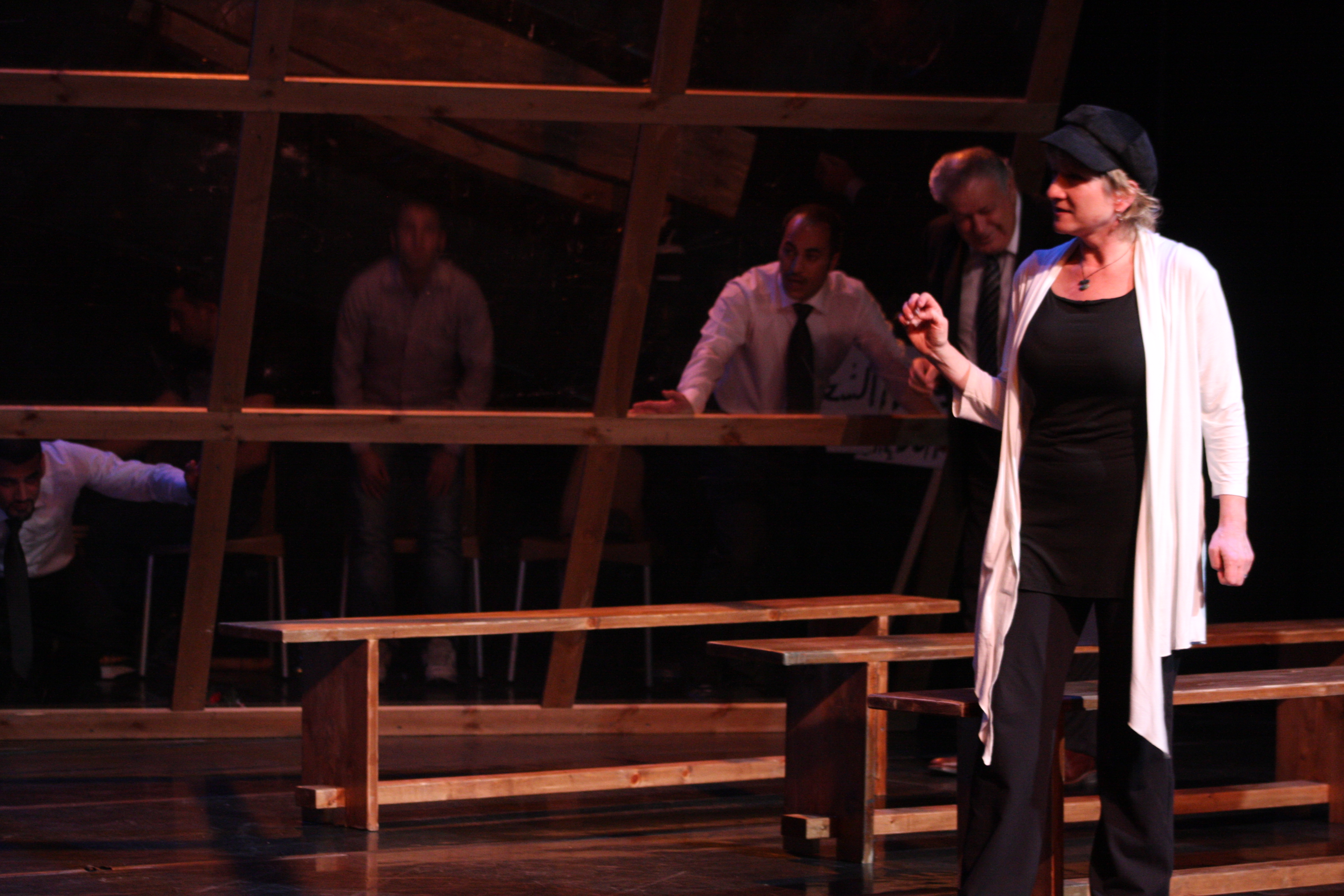 صورة ملونة من عرض مسرحية "محطات مارتن لوثر كنغ" في مسرح وسينماتك القصبة خلال مهرجان أيام المنارة المسرحية عام 2011.