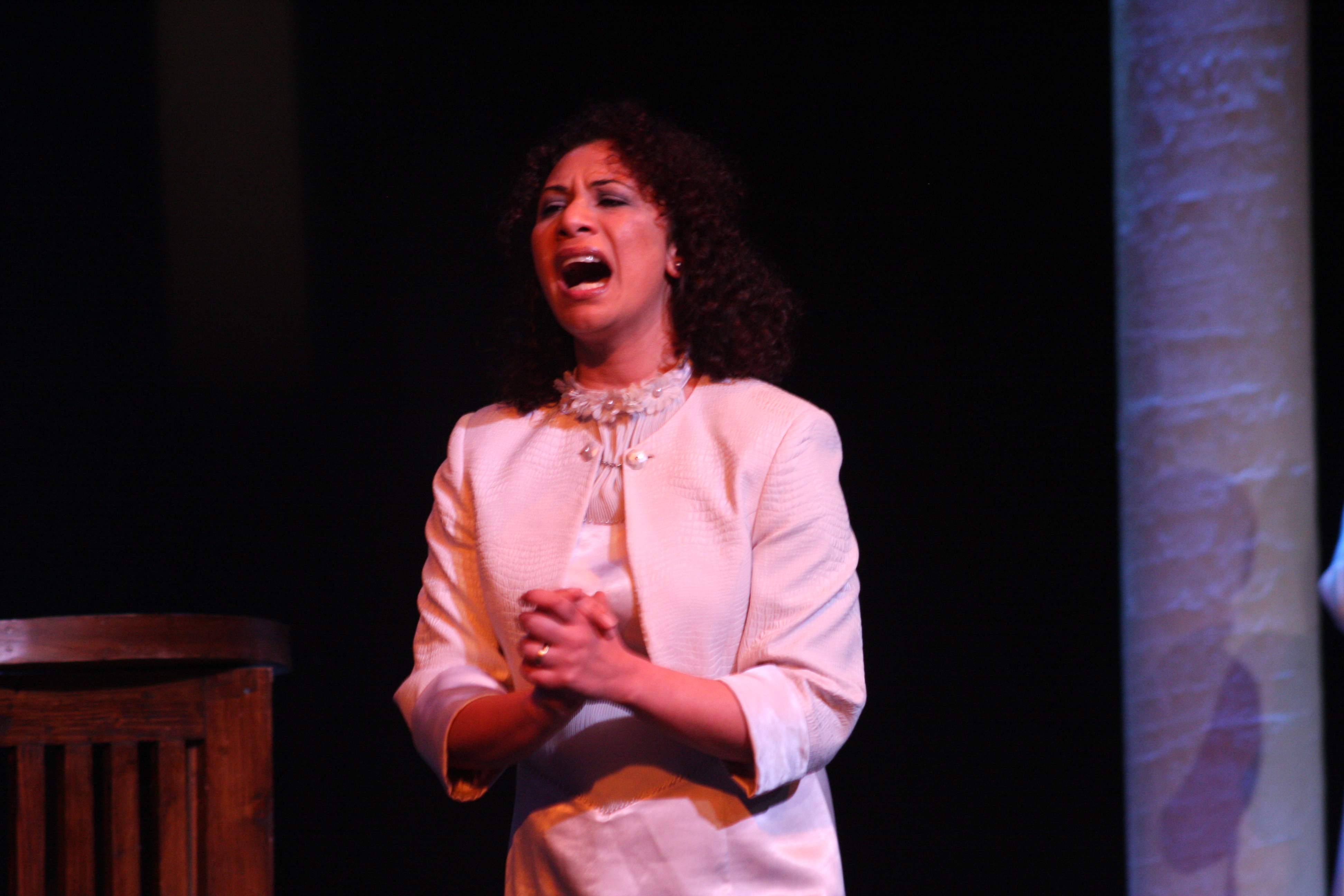 صورة ملونة من عرض مسرحية "محطات مارتن لوثر كنغ" في مسرح وسينماتك القصبة خلال مهرجان أيام المنارة المسرحية عام 2011.
