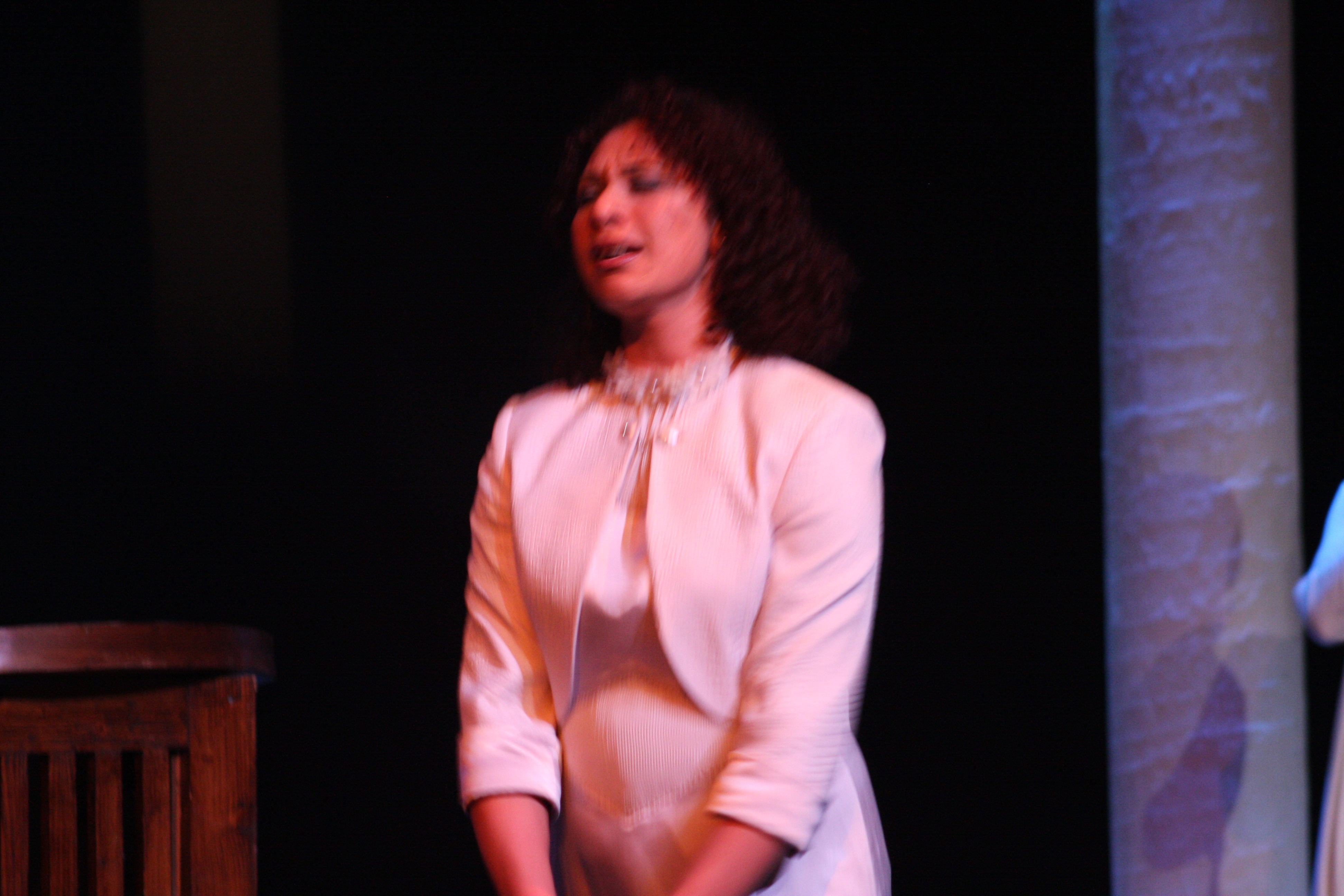 صورة ملونة من عرض مسرحية "محطات مارتن لوثر كنغ" في مسرح وسينماتك القصبة خلال مهرجان أيام المنارة المسرحية عام 2011.