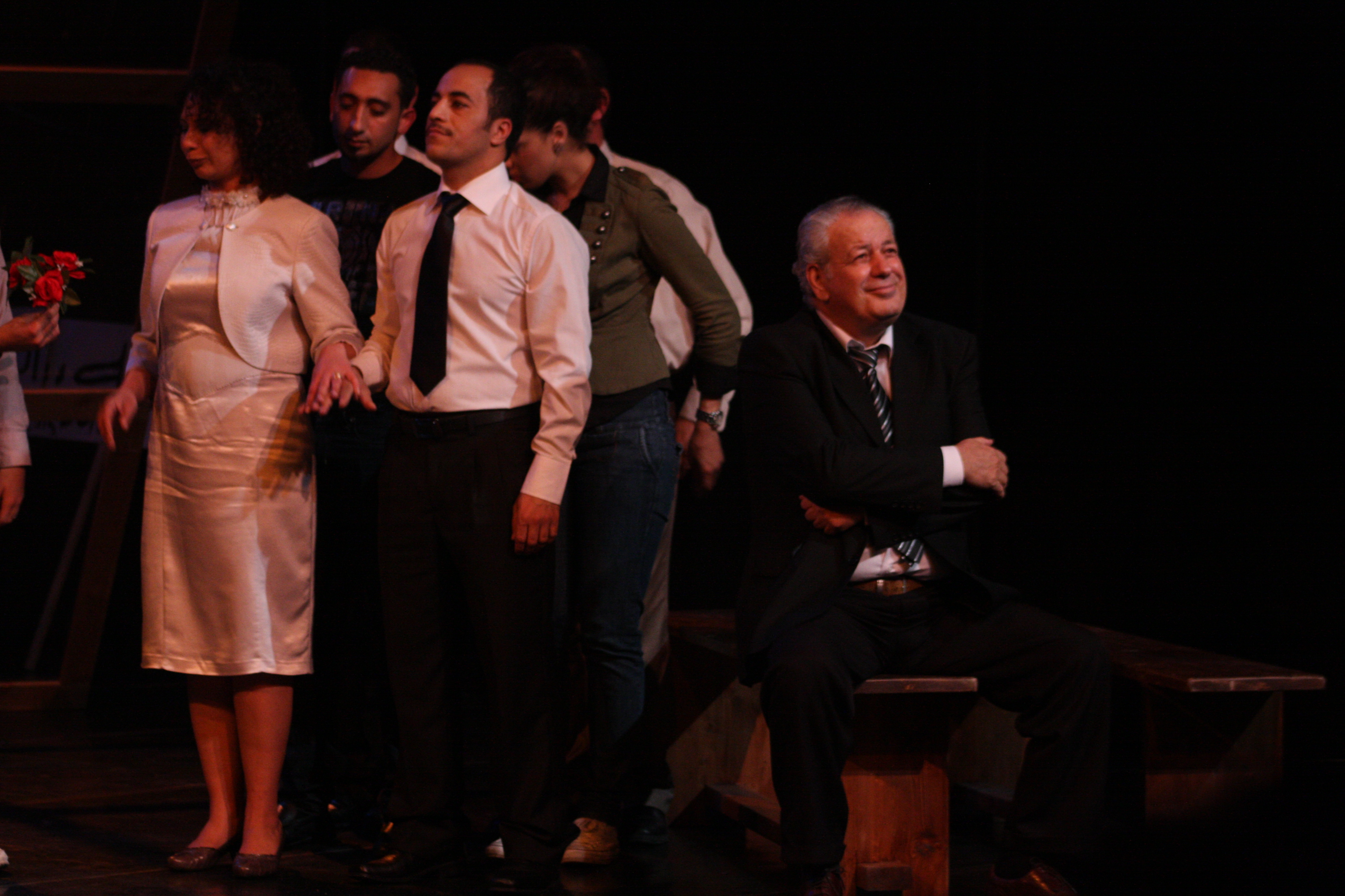 صورة ملونة من عرض مسرحية "محطات مارتن لوثر كنغ" في مسرح وسينماتك القصبة خلال مهرجان أيام المنارة المسرحية عام 2011.