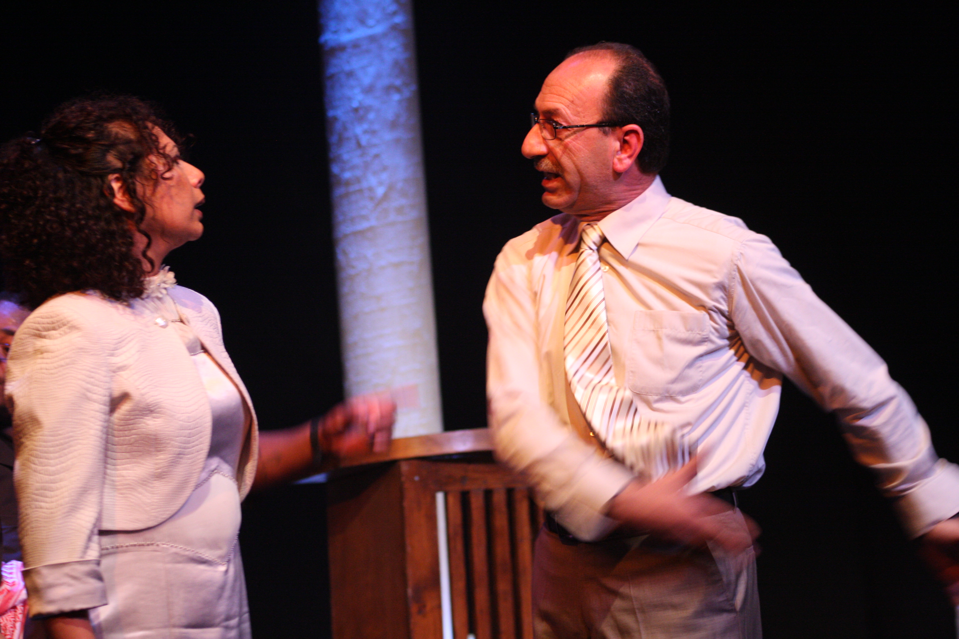 صورة ملونة من عرض مسرحية "محطات مارتن لوثر كنغ" في مسرح وسينماتك القصبة خلال مهرجان أيام المنارة المسرحية عام 2011.