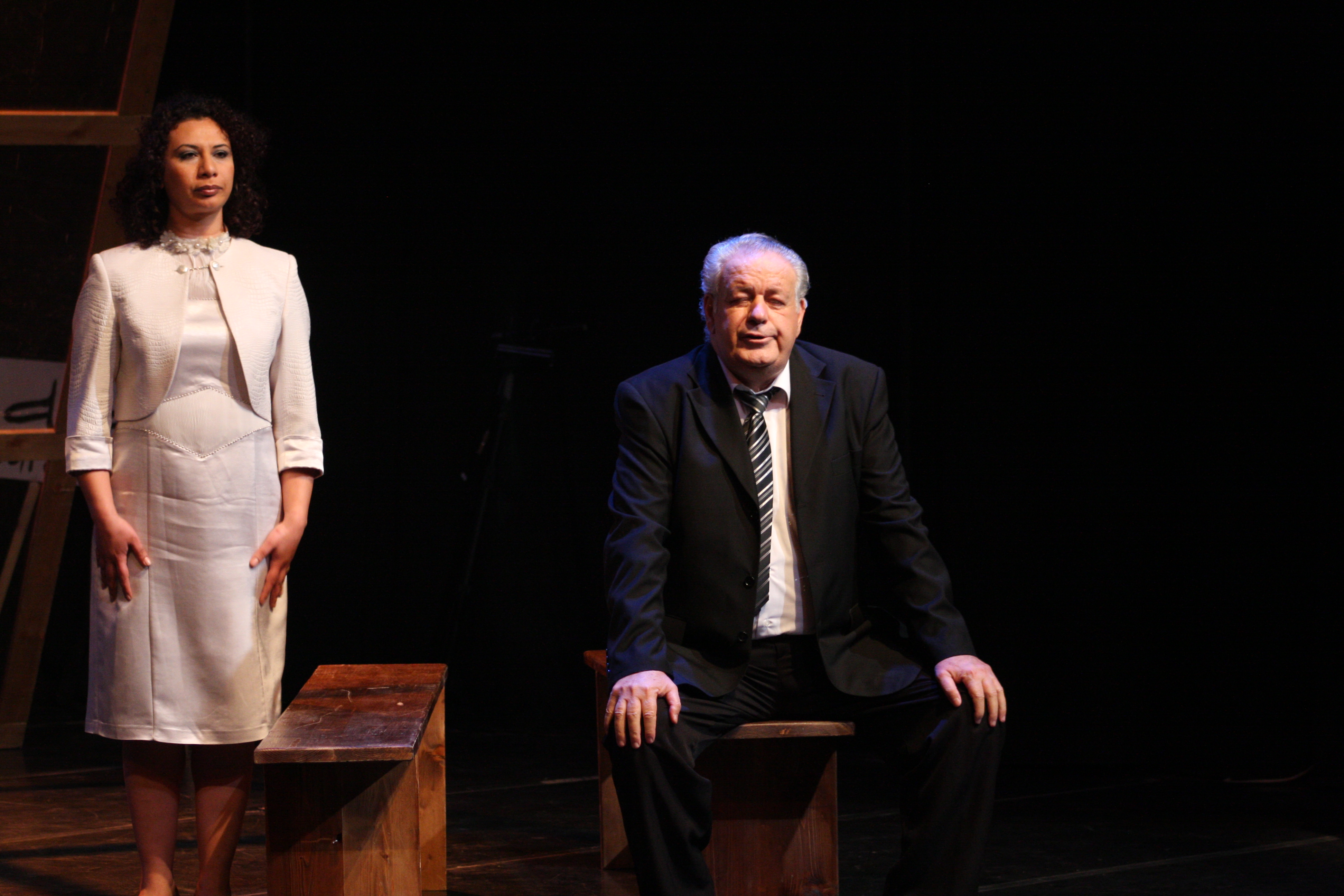صورة ملونة من عرض مسرحية "محطات مارتن لوثر كنغ" في مسرح وسينماتك القصبة خلال مهرجان أيام المنارة المسرحية عام 2011.