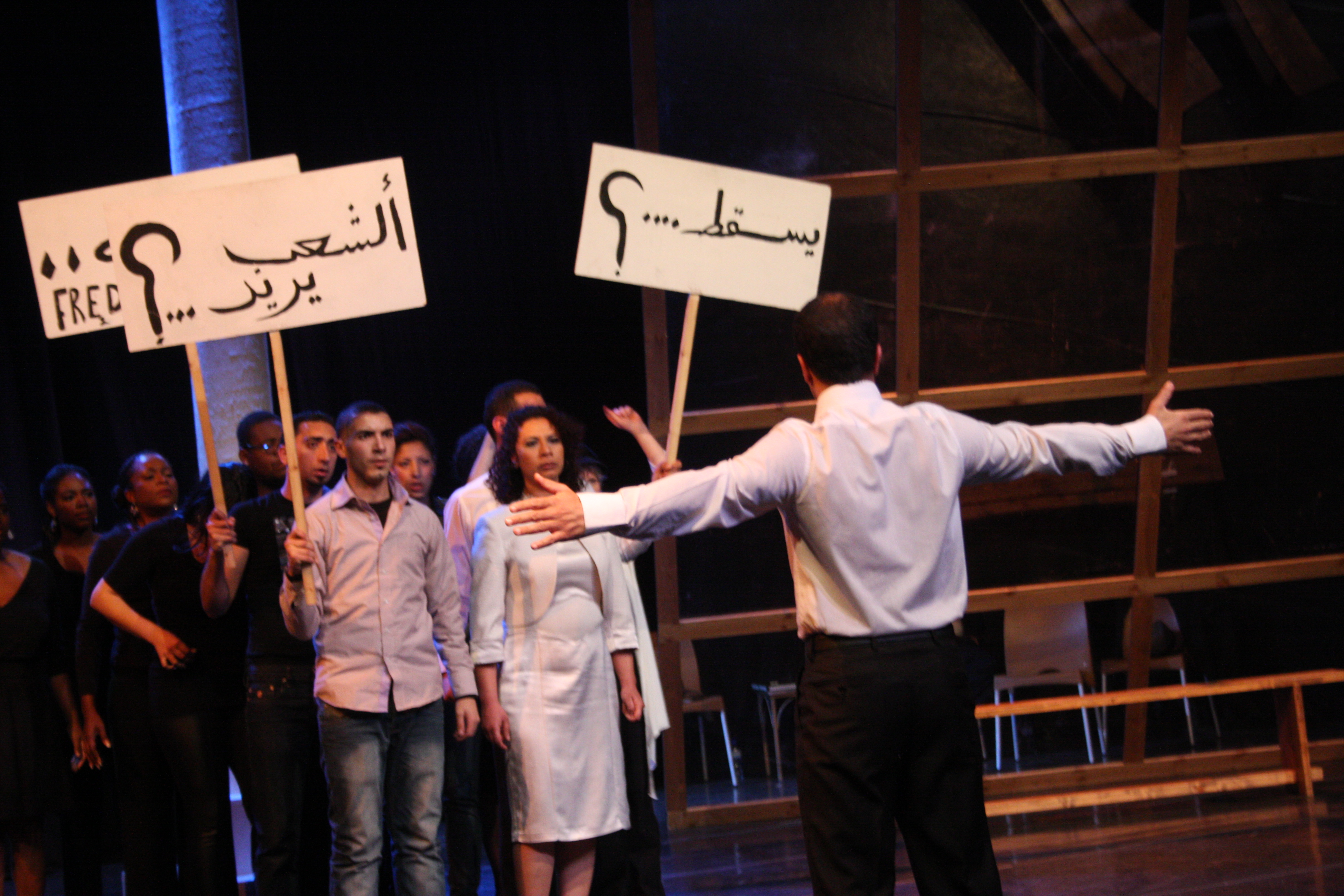 عرض مسرحية "محطات مارتن لوثر كنغ" في مسرح وسينماتك القصبة خلال مهرجان أيام المنارة المسرحية عام 2011