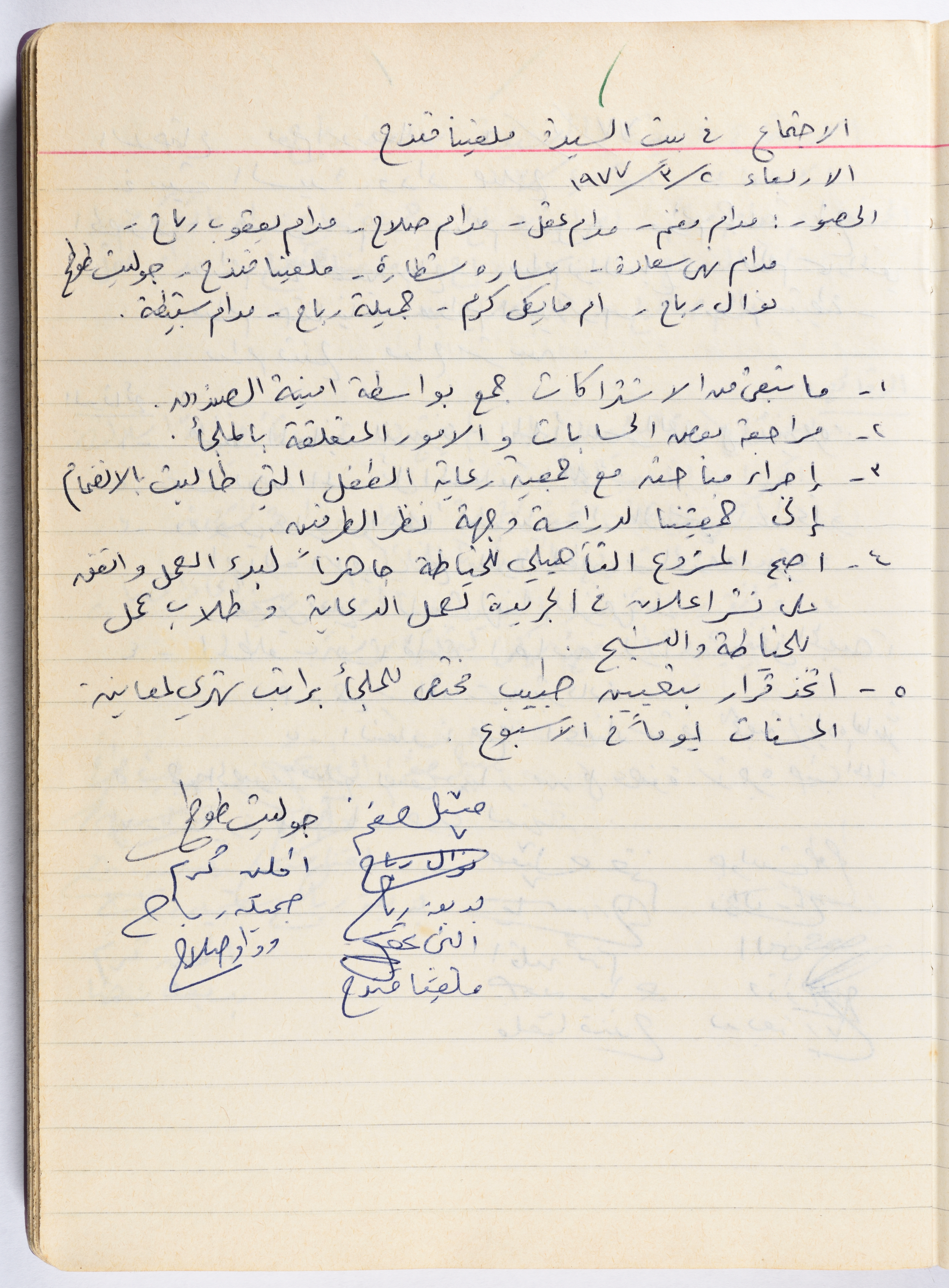 محضر جلسة للهيئة الإدارية في جمعية الاتحاد النسائي العربي - رام الله