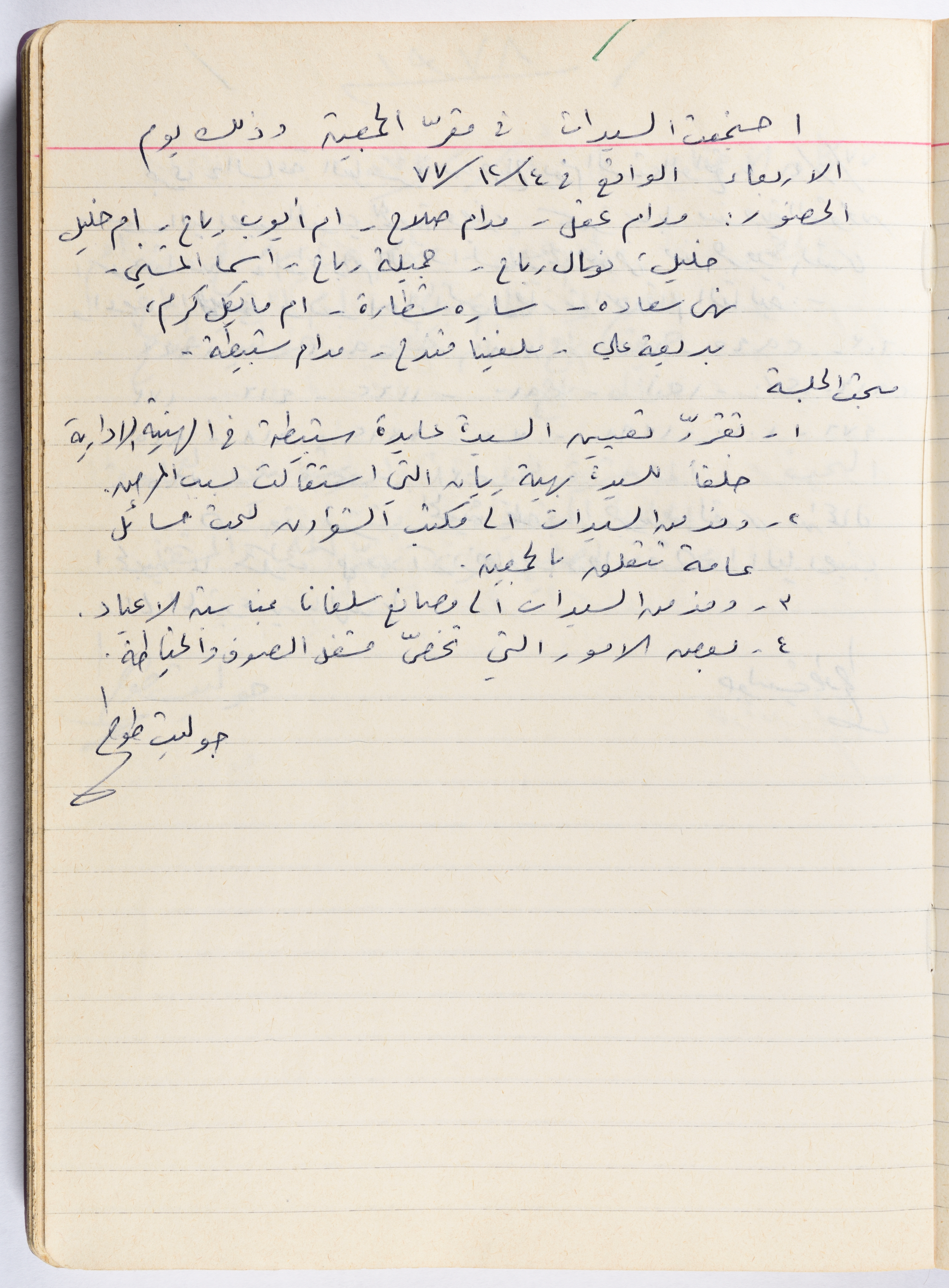 محضر جلسة للهيئة الإدارية في جمعية الاتحاد النسائي العربي - رام الله