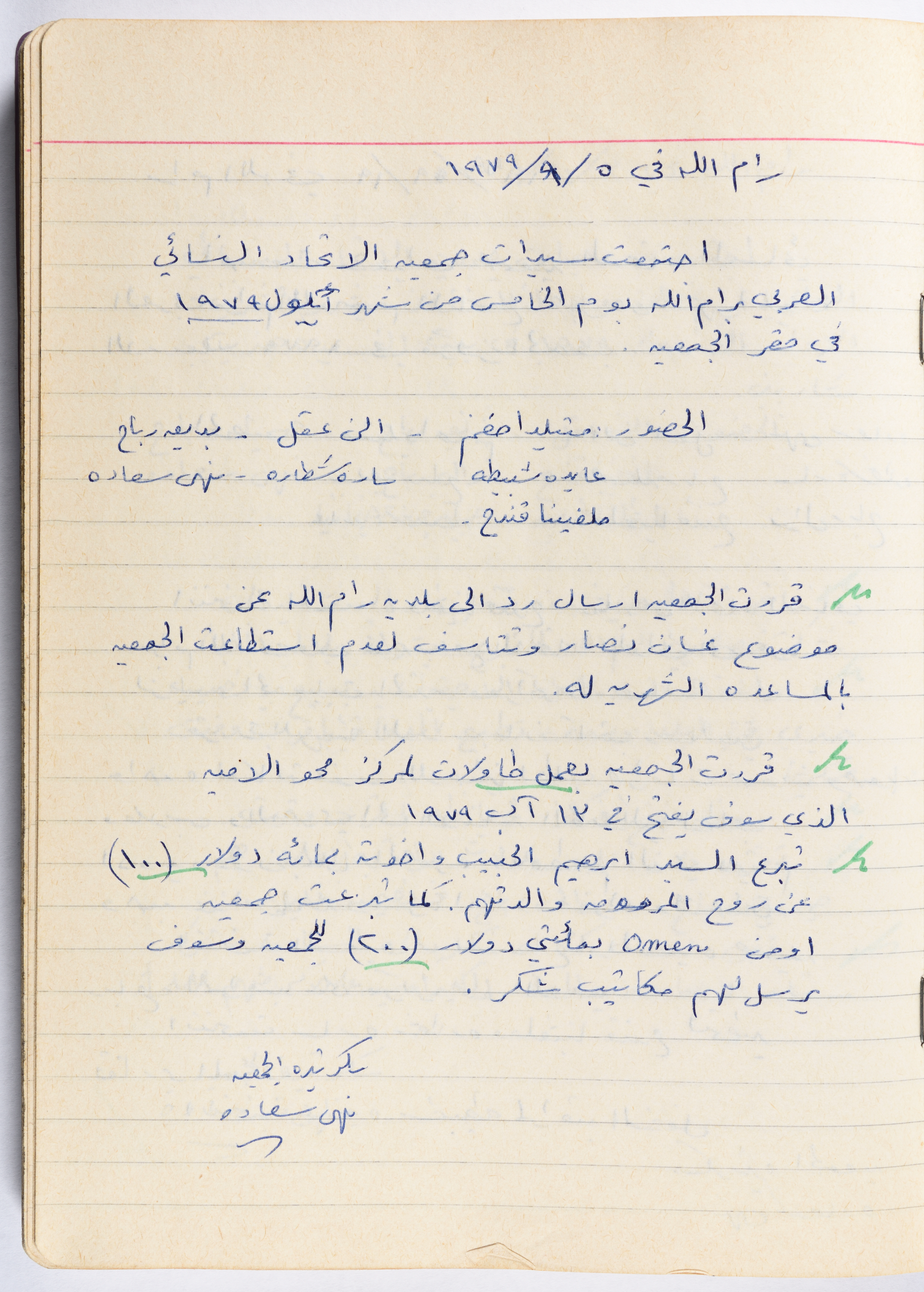 محضر جلسة للهيئة الإدارية في جمعية الاتحاد النسائي العربي - رام الله