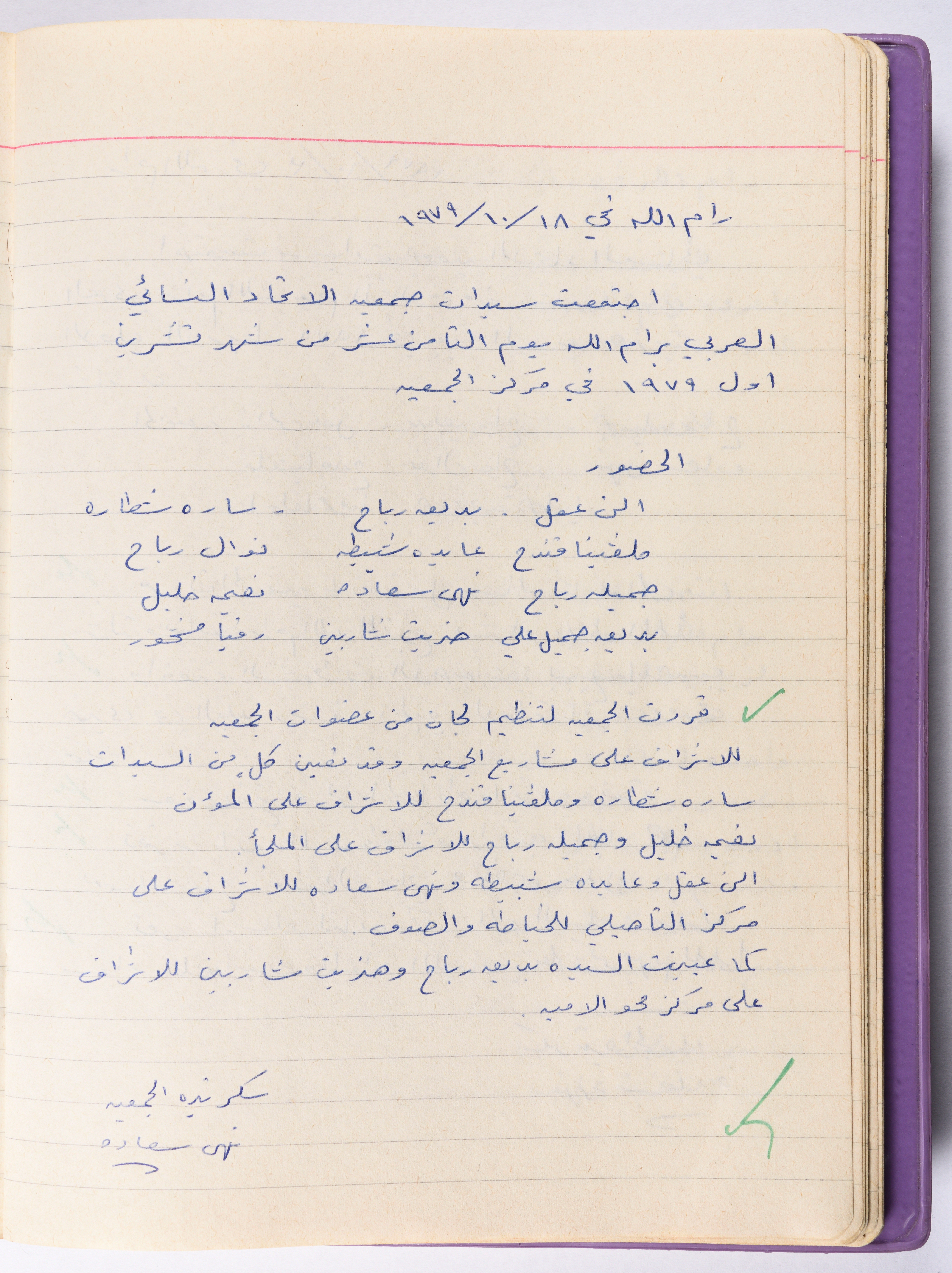 محضر جلسة للهيئة الإدارية في جمعية الاتحاد النسائي العربي - رام الله
