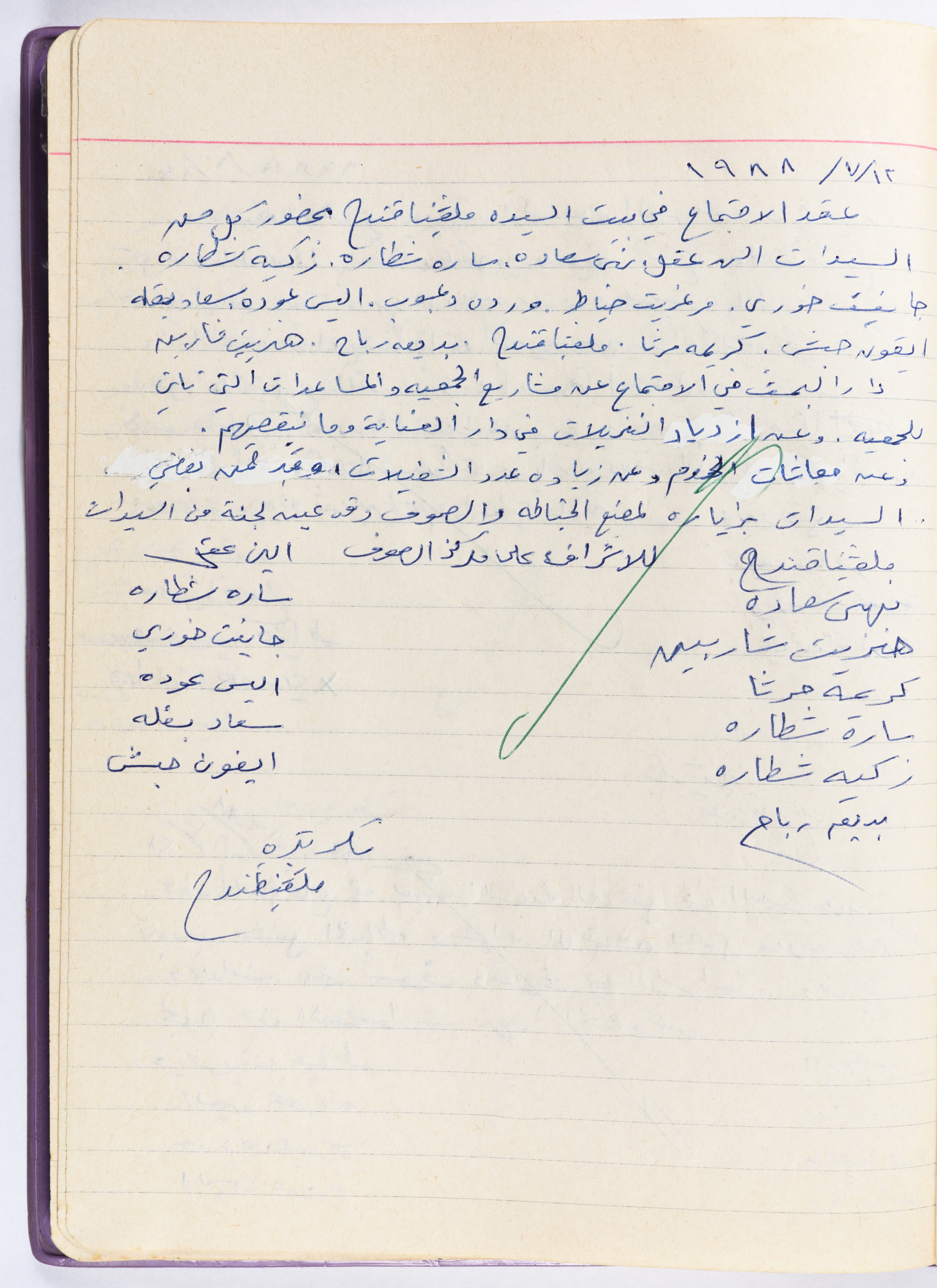 محضر جلسة للهيئة الإدارية في جمعية الاتحاد النسائي العربي - رام الله